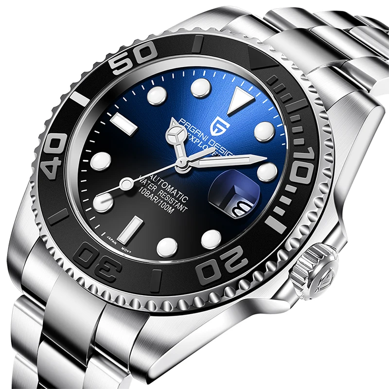 Часы PAGANI мужские, из нержавеющей стали, водонепроницаемые, автоматические, для дайвинга, 100 м