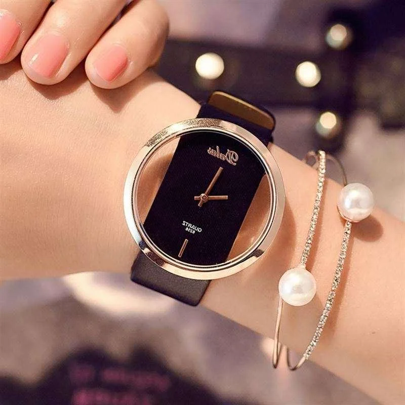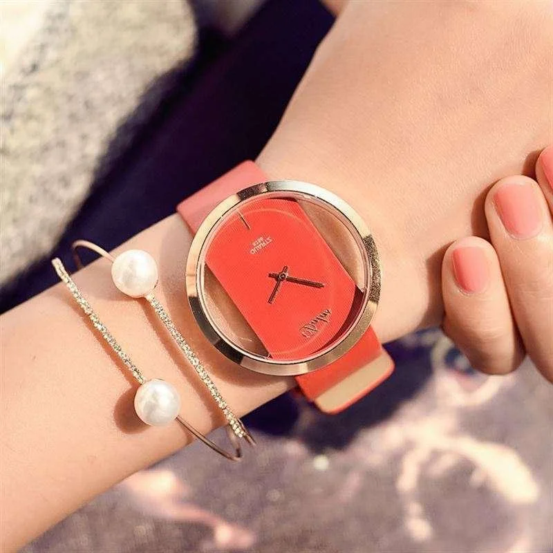 Часы наручные женские кварцевые аналоговые, с кожаным ремешком