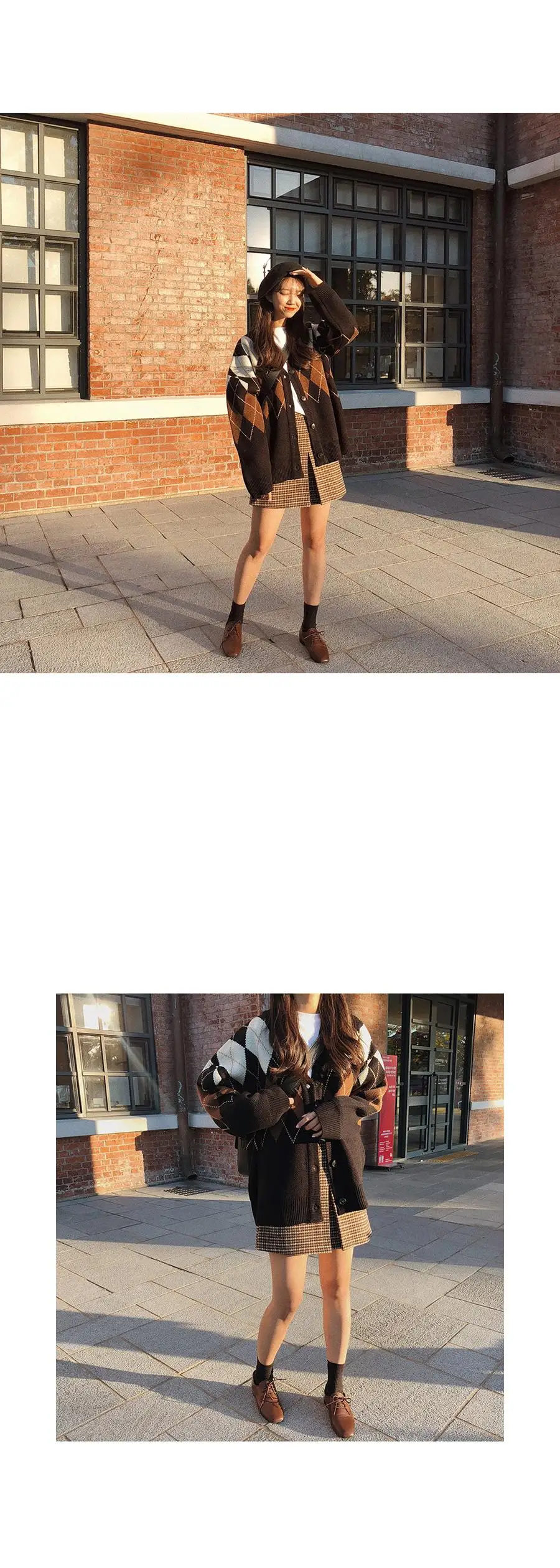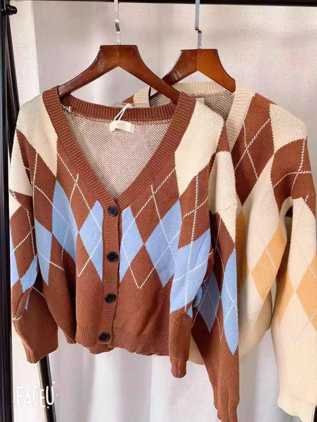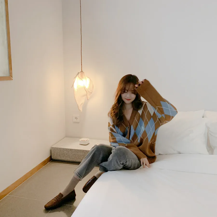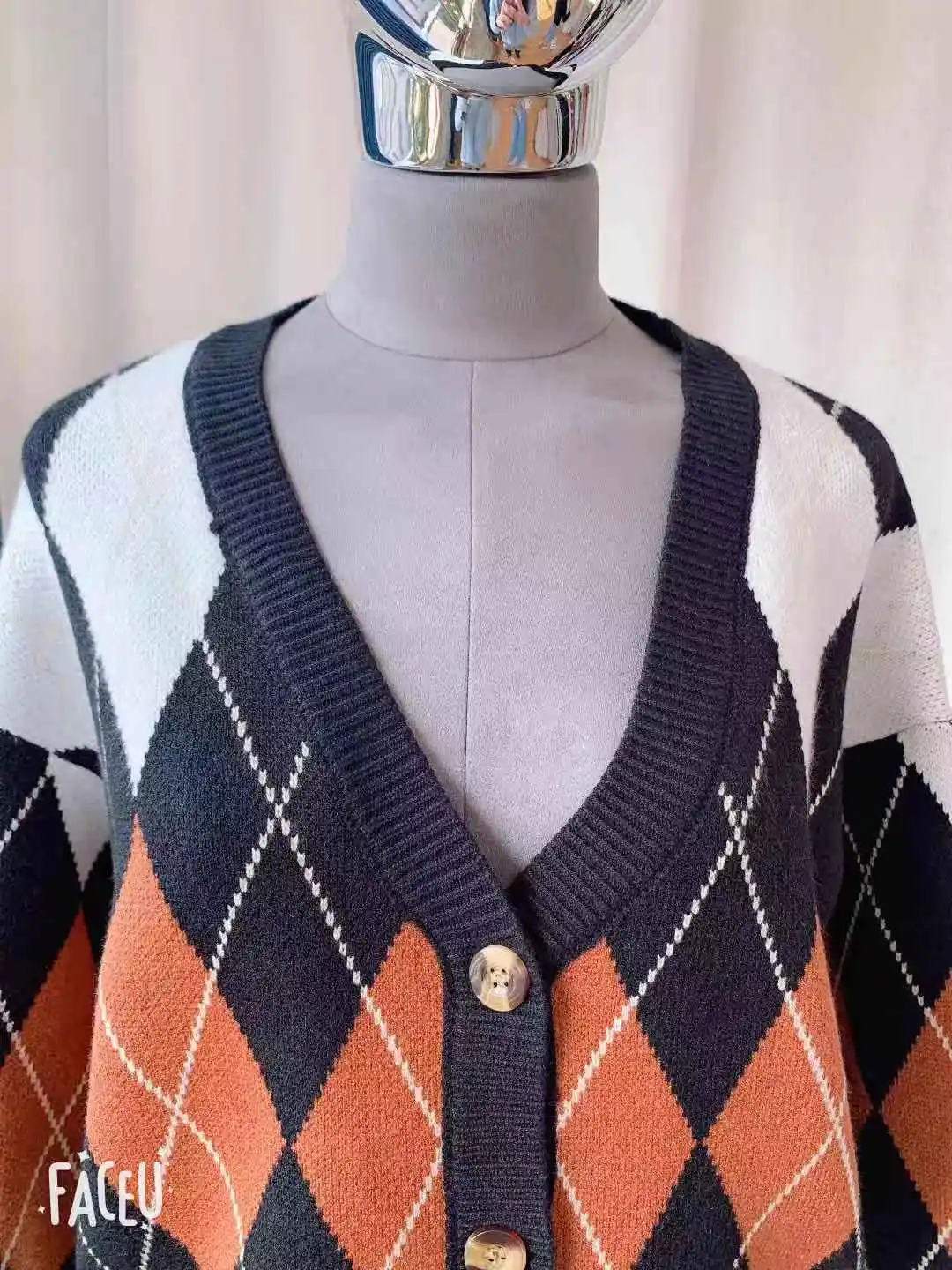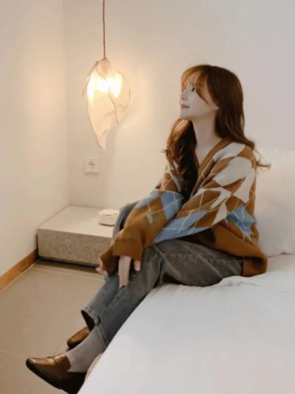 Новинка, женские свитера оверсайз, Осень-зима, Модные Винтажные клетчатые кардиганы с v-образным вырезом, однобортный Свободный кардиган с пышными рукавами