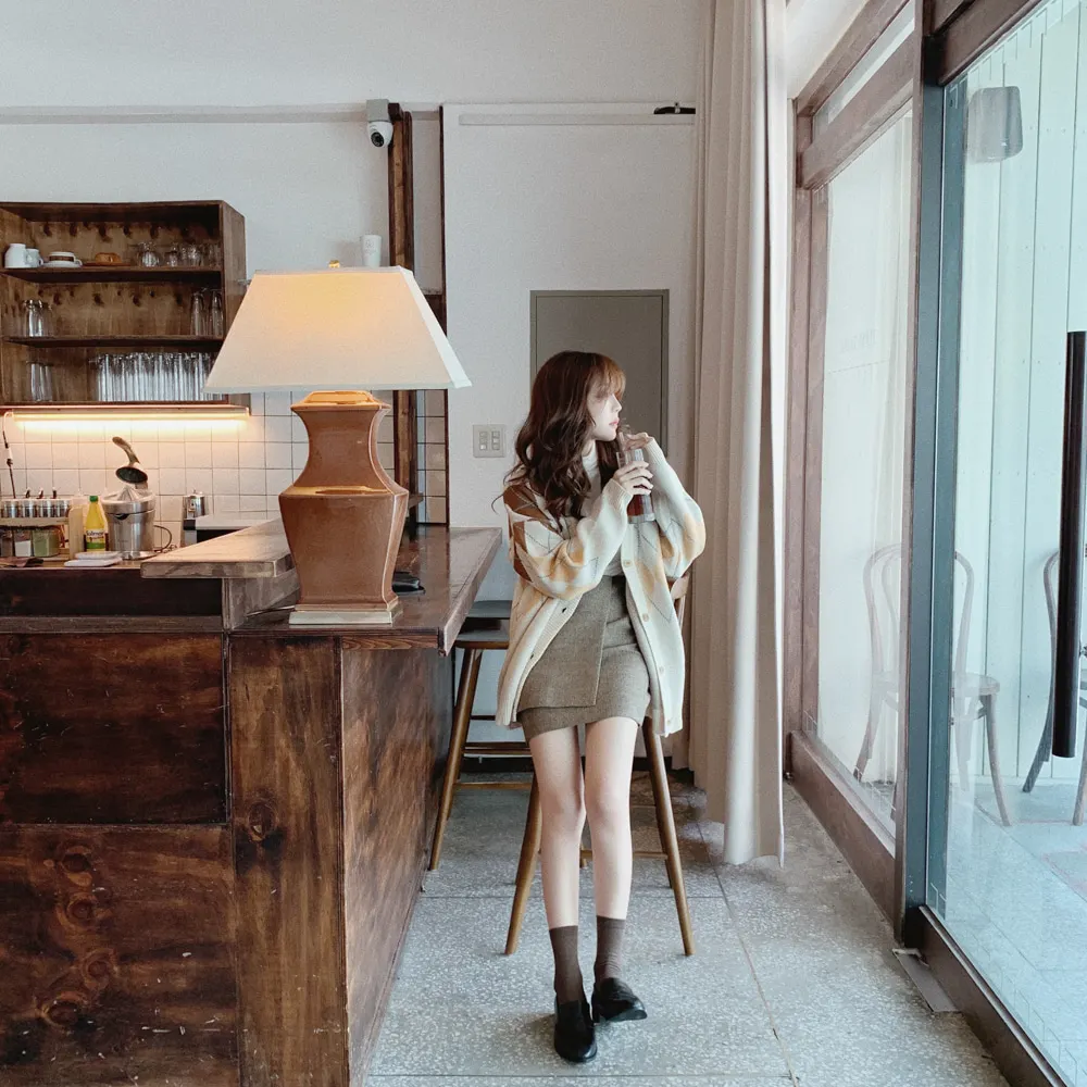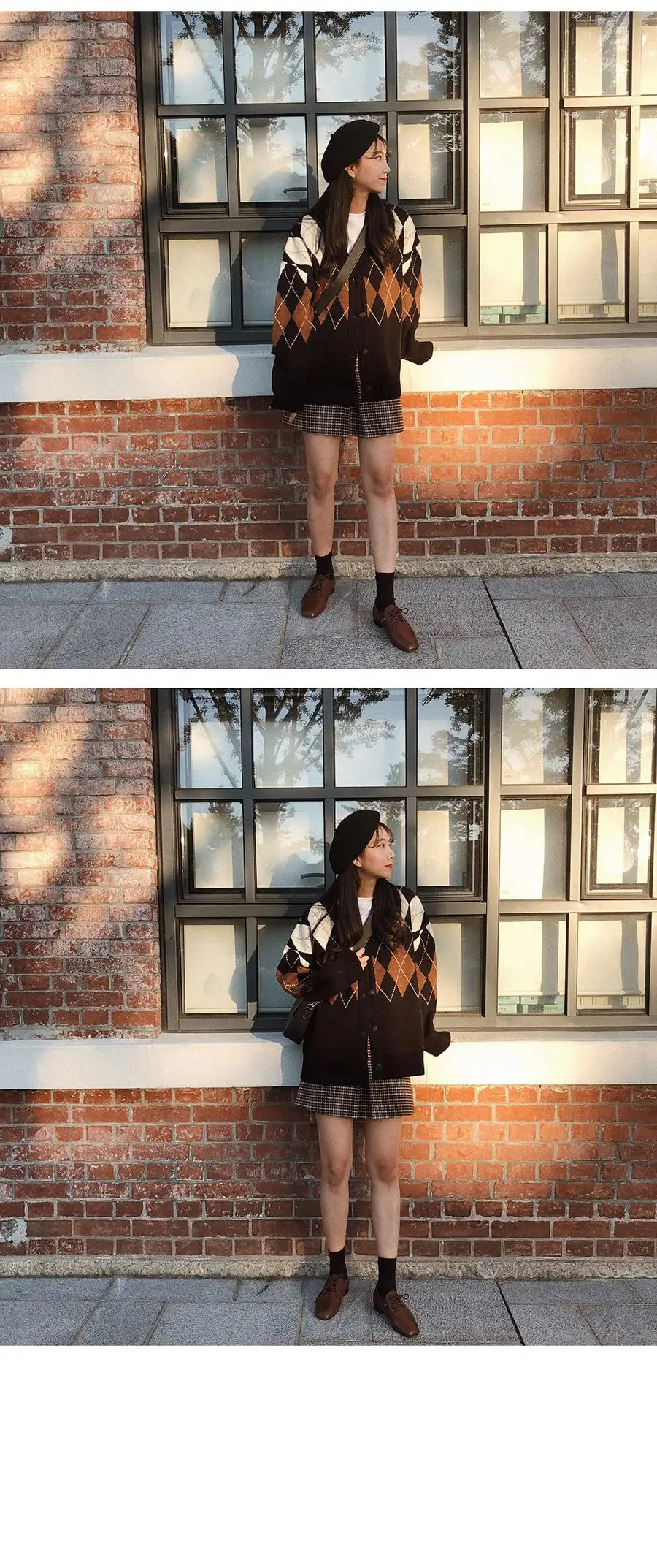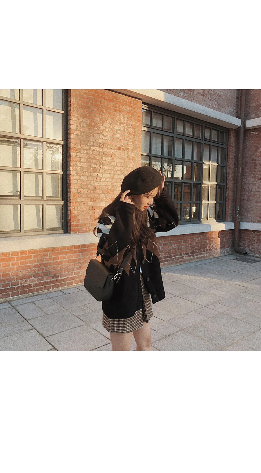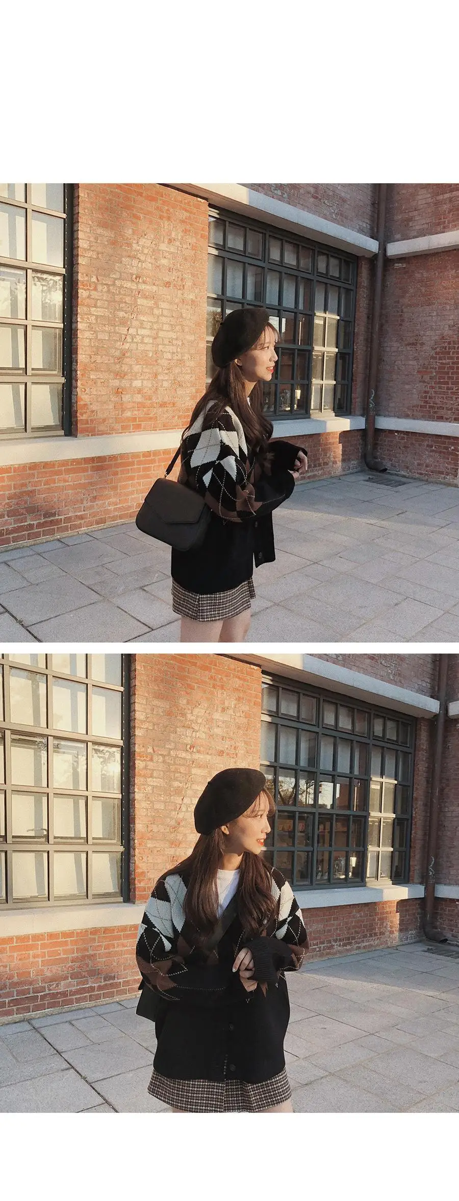 Новинка, женские свитера оверсайз, Осень-зима, Модные Винтажные клетчатые кардиганы с v-образным вырезом, однобортный Свободный кардиган с пышными рукавами