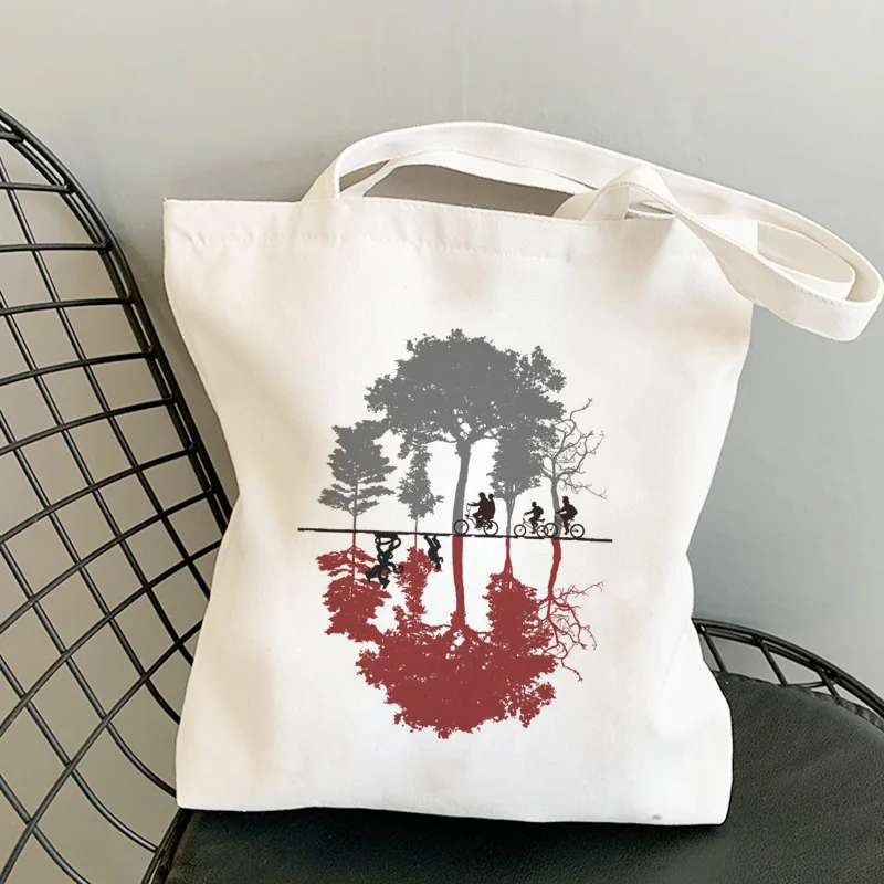 Повседневные холщовые сумки на ремне с мультяшным принтом странные дела, модные сумочки для покупок в стиле Харадзюку, Забавный женский кошелек