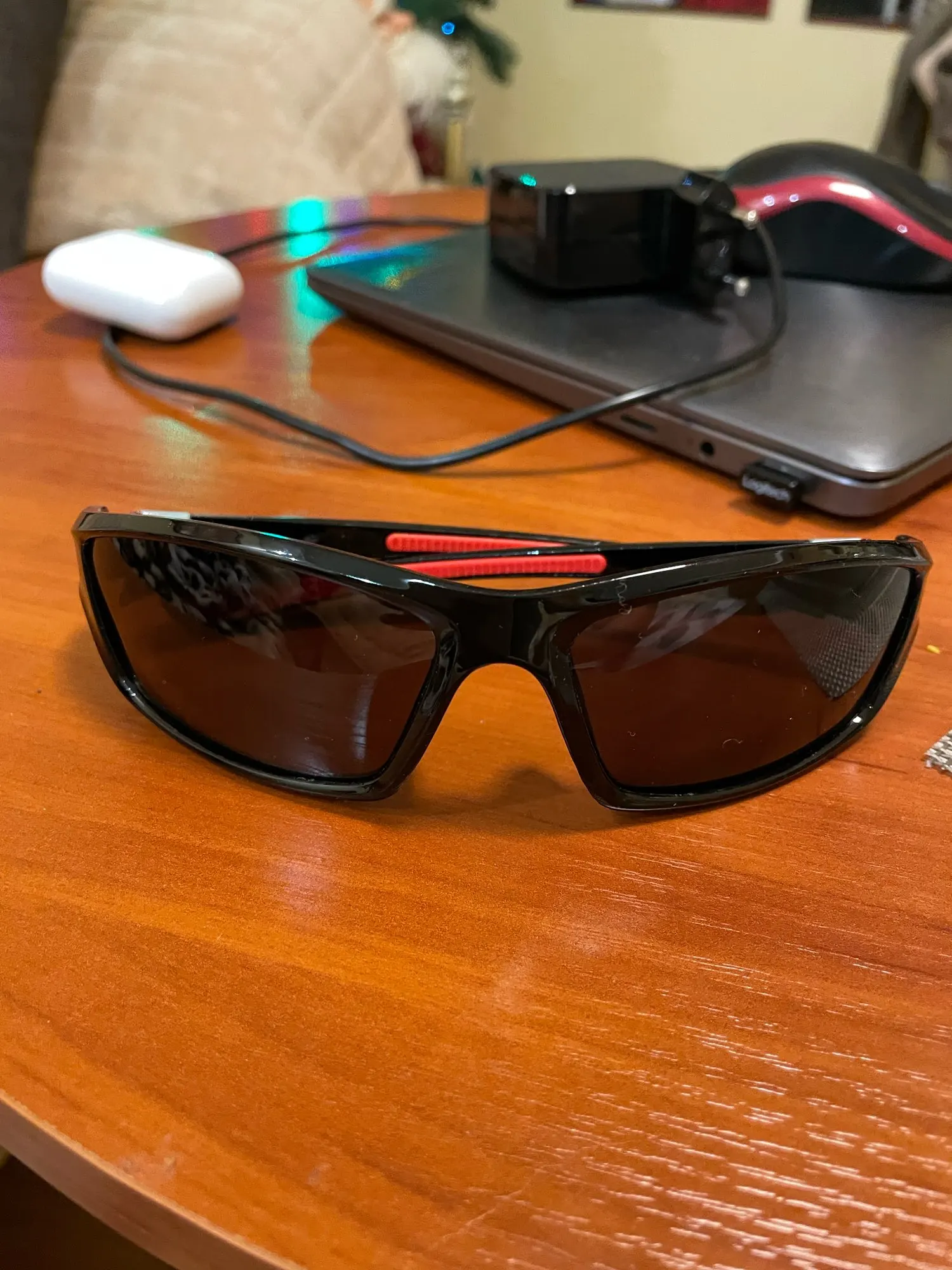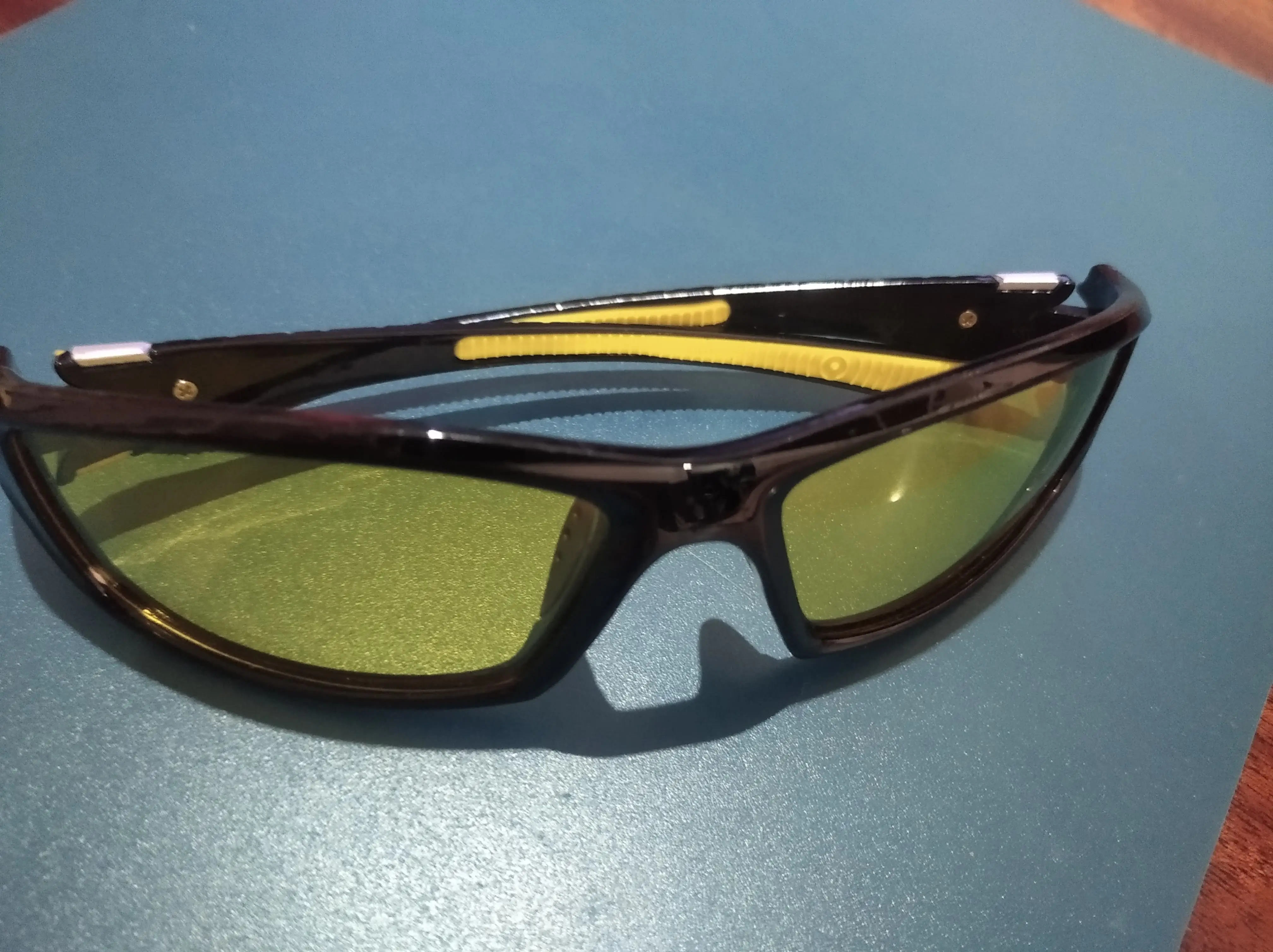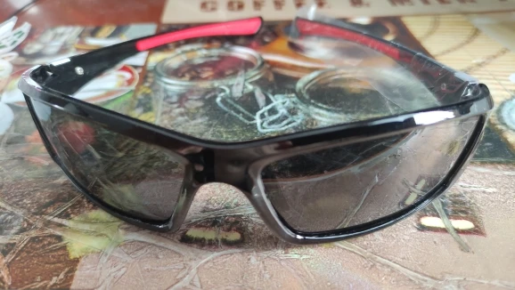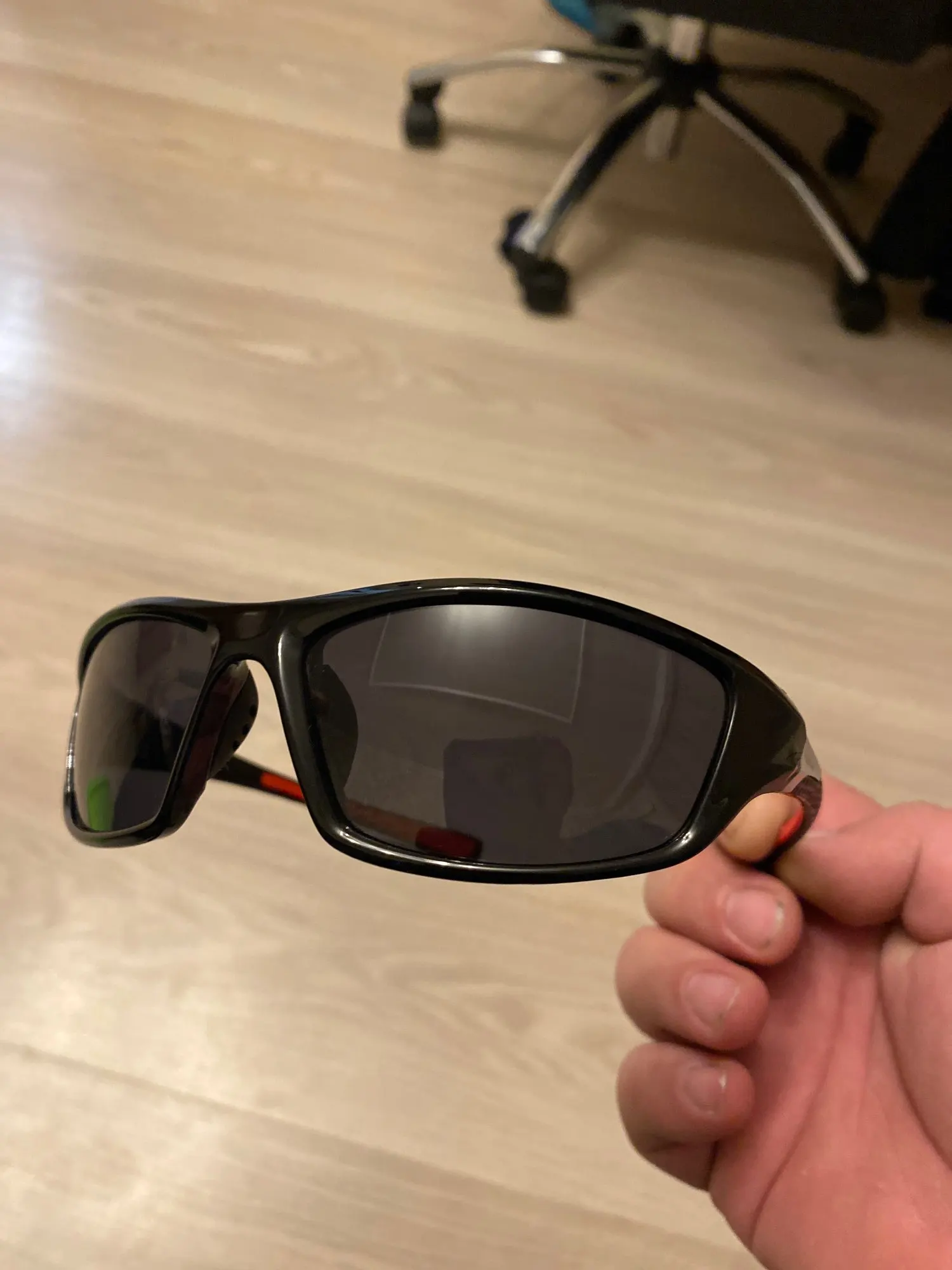 За эти деньги нормальные очки. При тщательном осмотре видно что дешман, но из далека как нормальные спортивные очки. Стёкла с поляризацией. Покупал с оранжевыми стёклами и как мне показалось это идеально для снежной зимы, когда солнце от белого снега отражается и ослепляет. Как ни странно, но у этих оранжевых, когда оденешь, то затемнение не жёлтое, а умеренное серо-голубое.