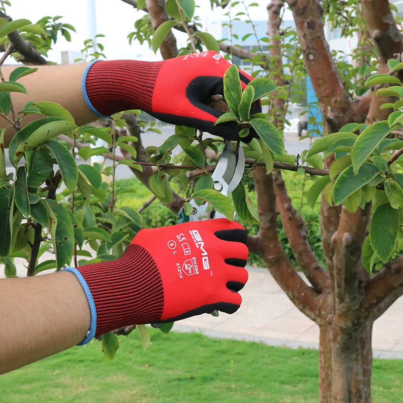 Мужские защитные перчатки GMG, красные Нитриловые Перчатки из полиэстера с покрытием песочного и красного цвета, 12 пар