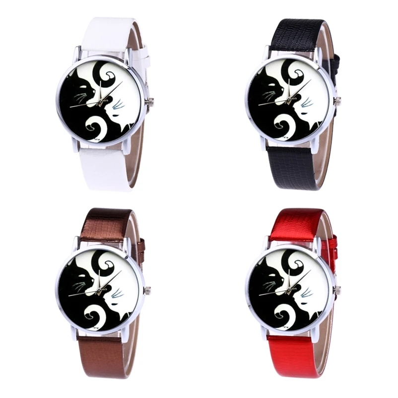 1 шт. новые женские кварцевые часы с принтом кота, кожаный ремешок, корейские женские студенческие часы, модные кварцевые наручные часы, подарочные часы, 4 цвета