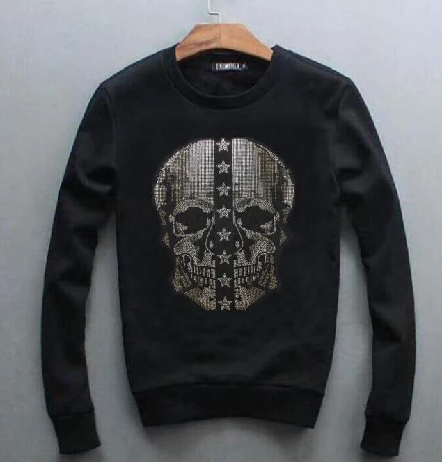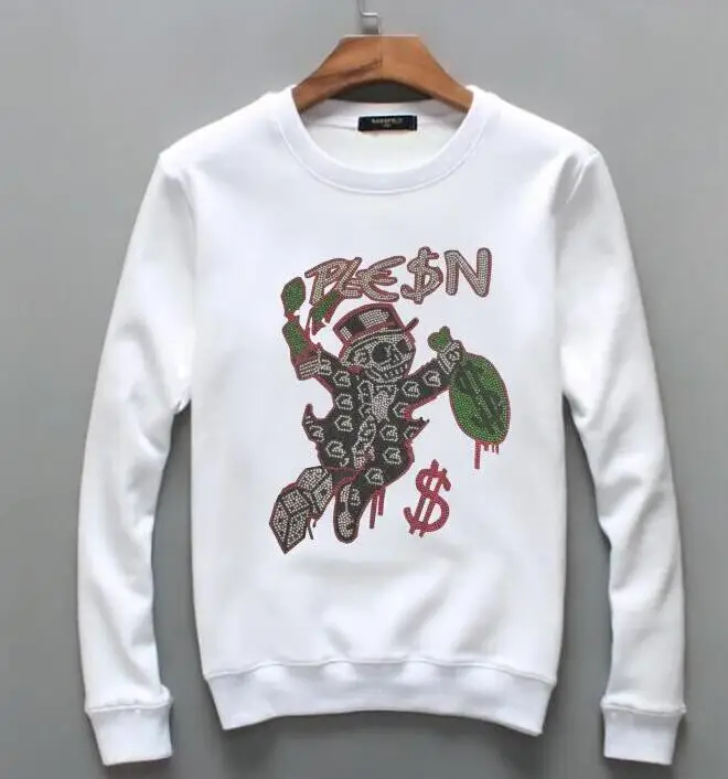 Толстовка мужская с круглым вырезом, Свитшот в стиле хип-хоп, со стразами, брендовая одежда, осень-зима