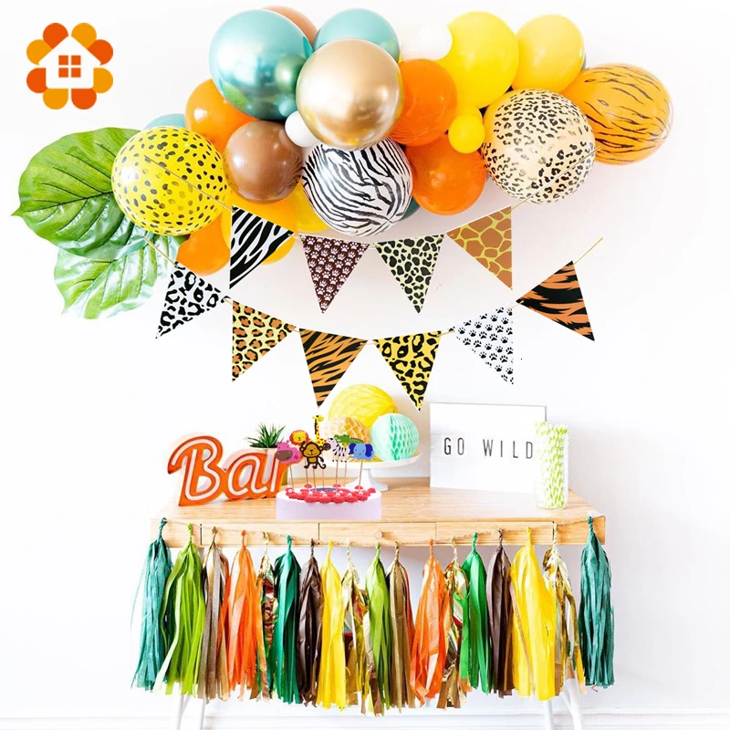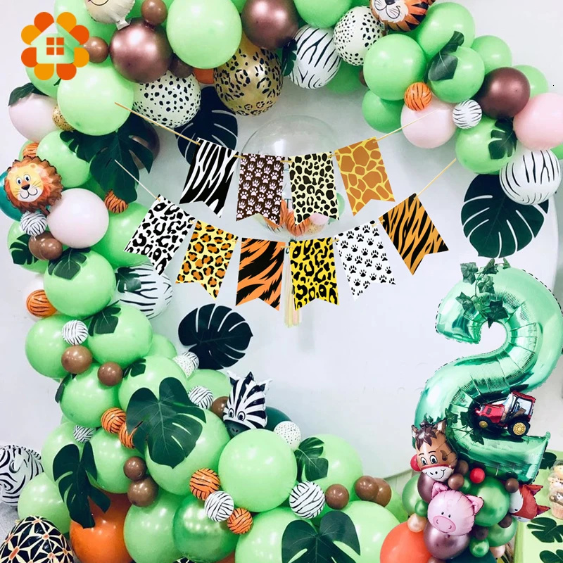1 комплект, зеленые вечерние цветы в джунглях, с листьями пальмы, с днем рождения, воздушные шары, баннеры, Крещение, день рождения, вечерние растительные принадлежности