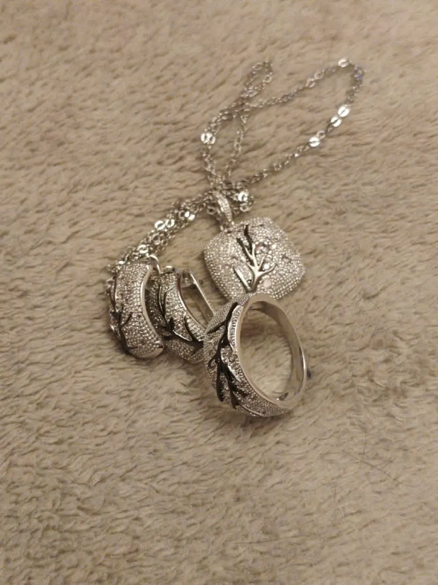 Кулон очень привлекательный. Фото соответствует. Цепочка в комплекте, но она короткая. Заказывала в серьгами в таком же оформлении. Комплектом смотрится замечательно.