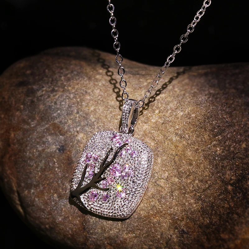 Женская подвеска в виде ветки Цветных Листьев из циркония, изящное ожерелье с блестящей розовой вишней, Ювелирное Украшение