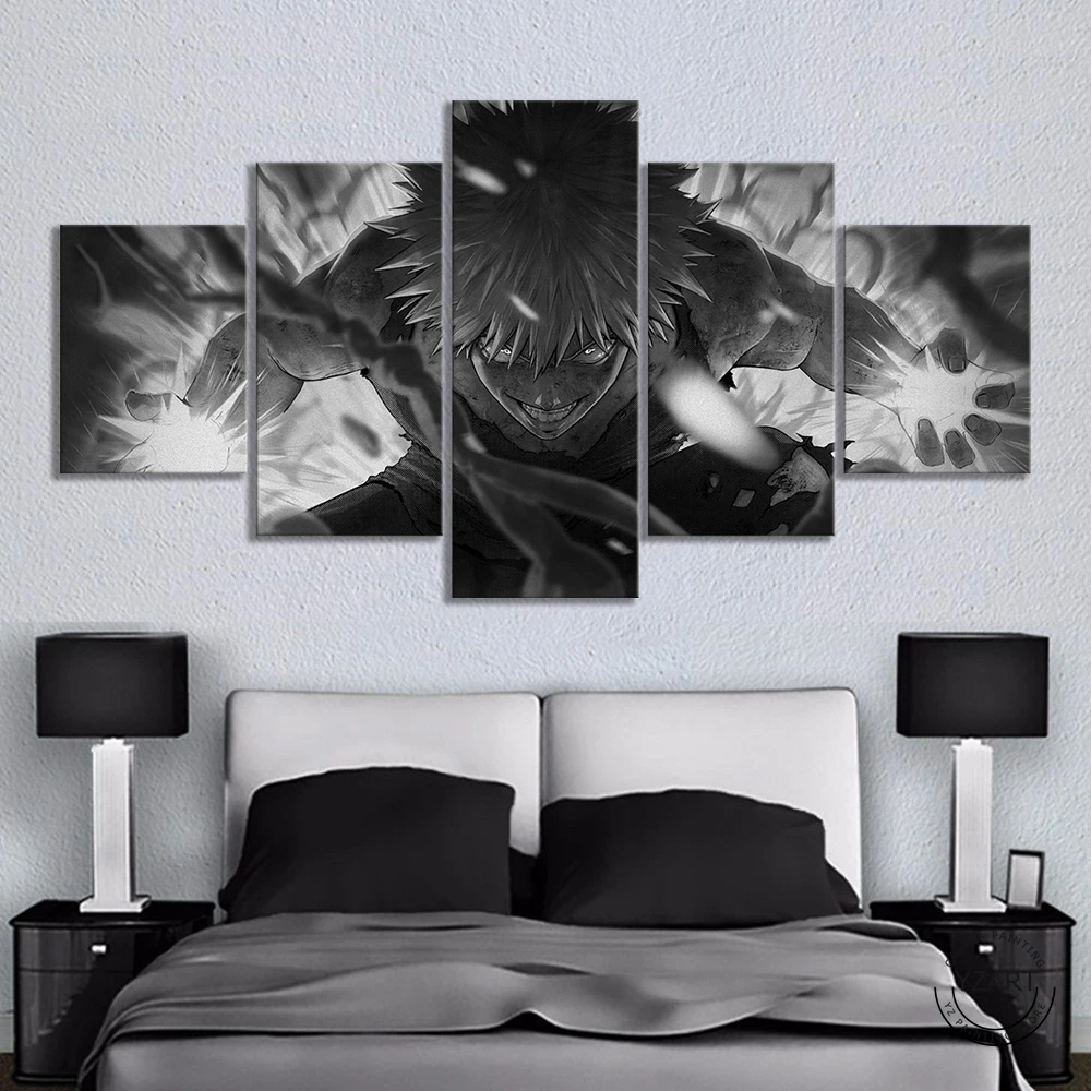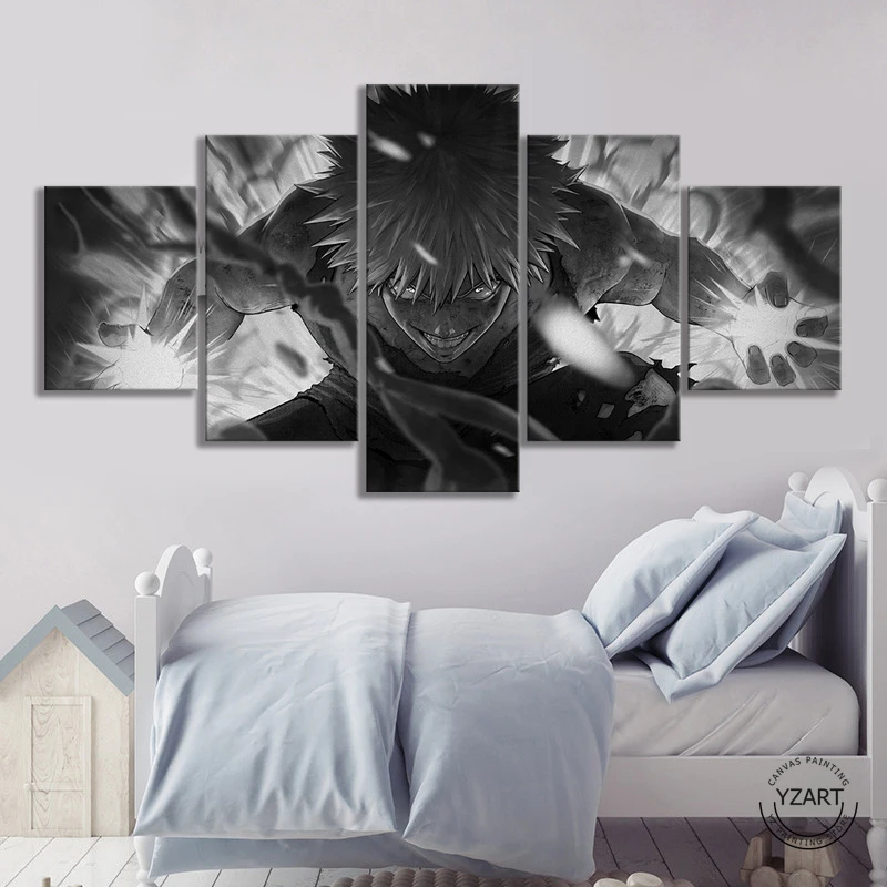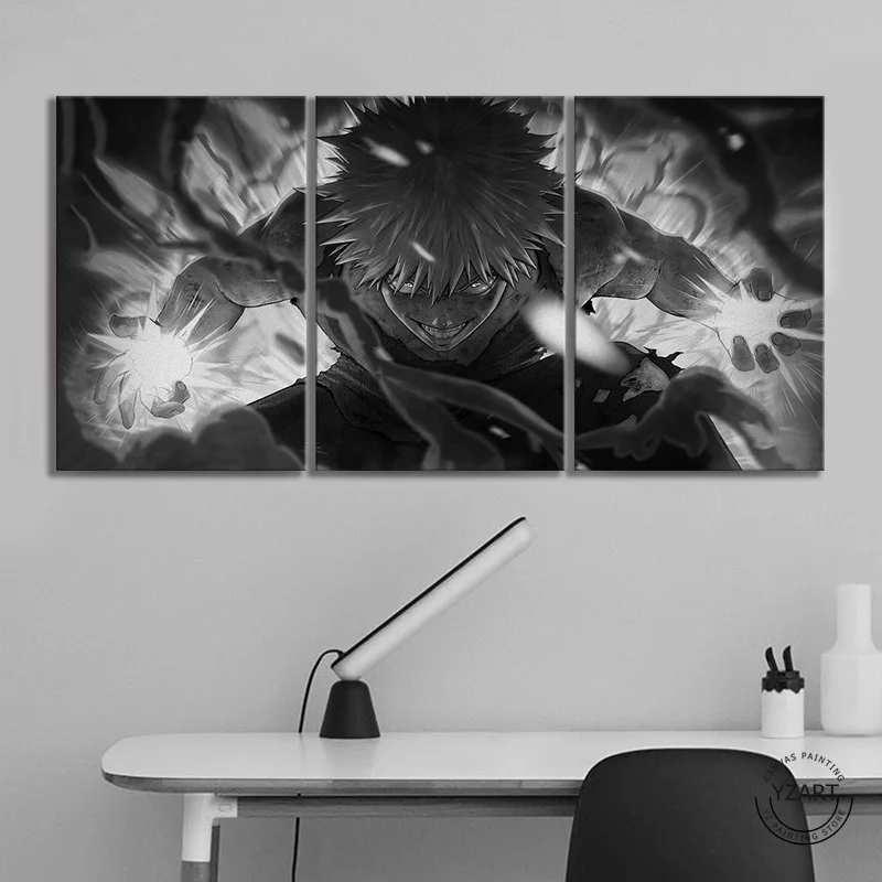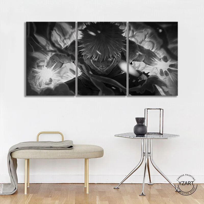 Аниме постер моя геройская Академия Bakugo Katsuki, комикс, искусство, черно-белая живопись, HD мультяшная Настенная картина для украшения гостиной