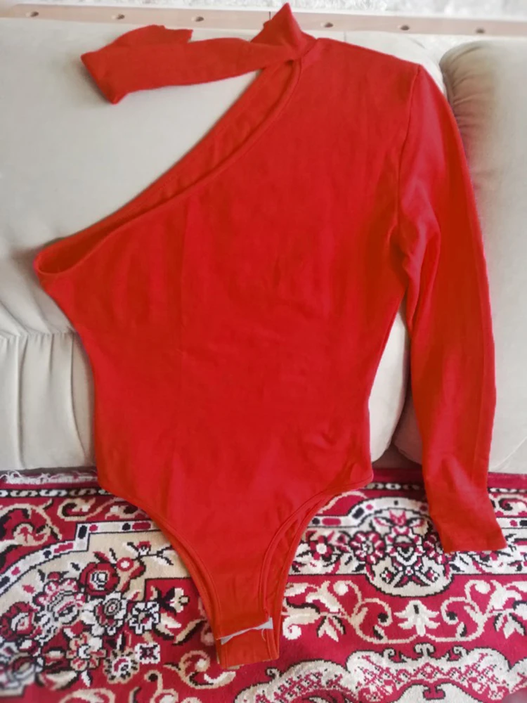 Боди женское однотонное на одно плечо, с длинным рукавом, зима-весна, 2019