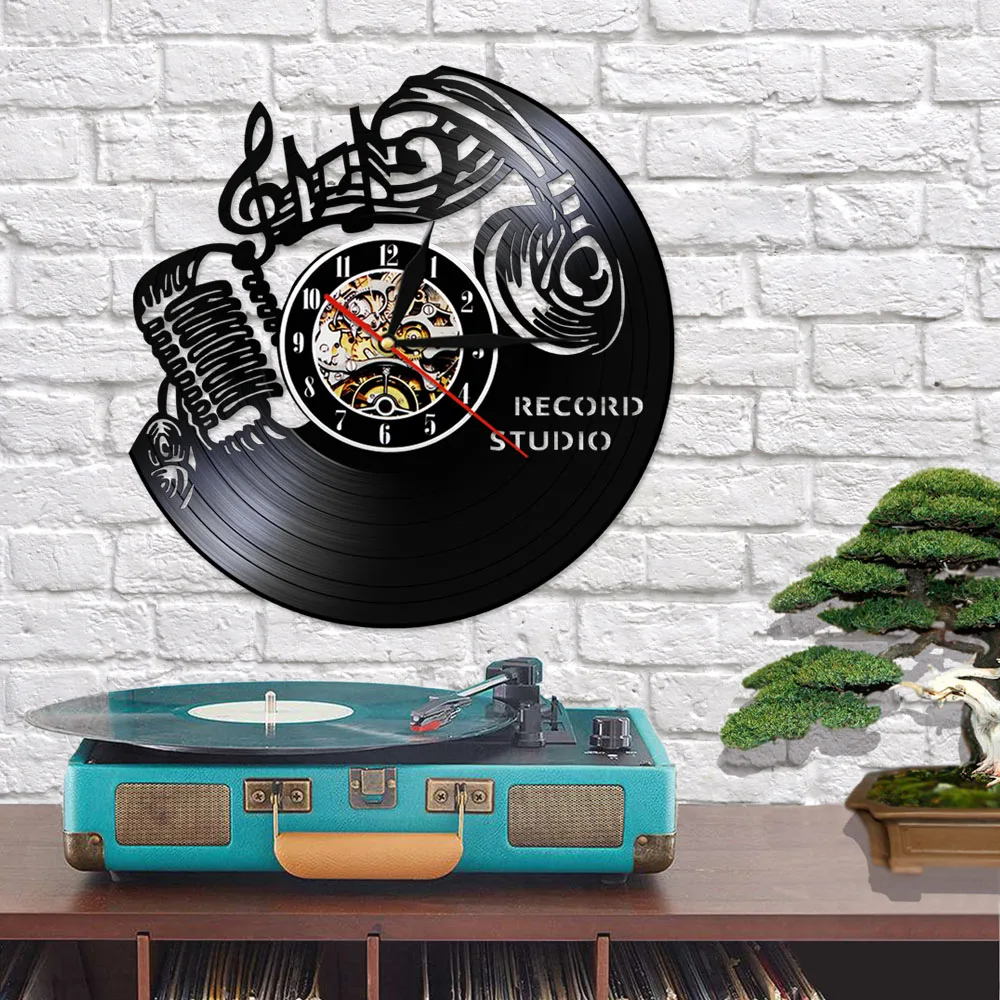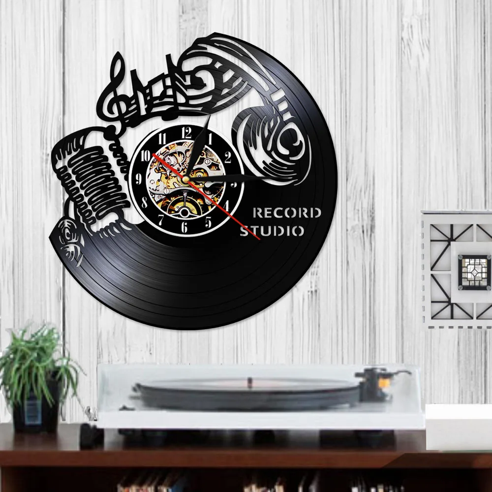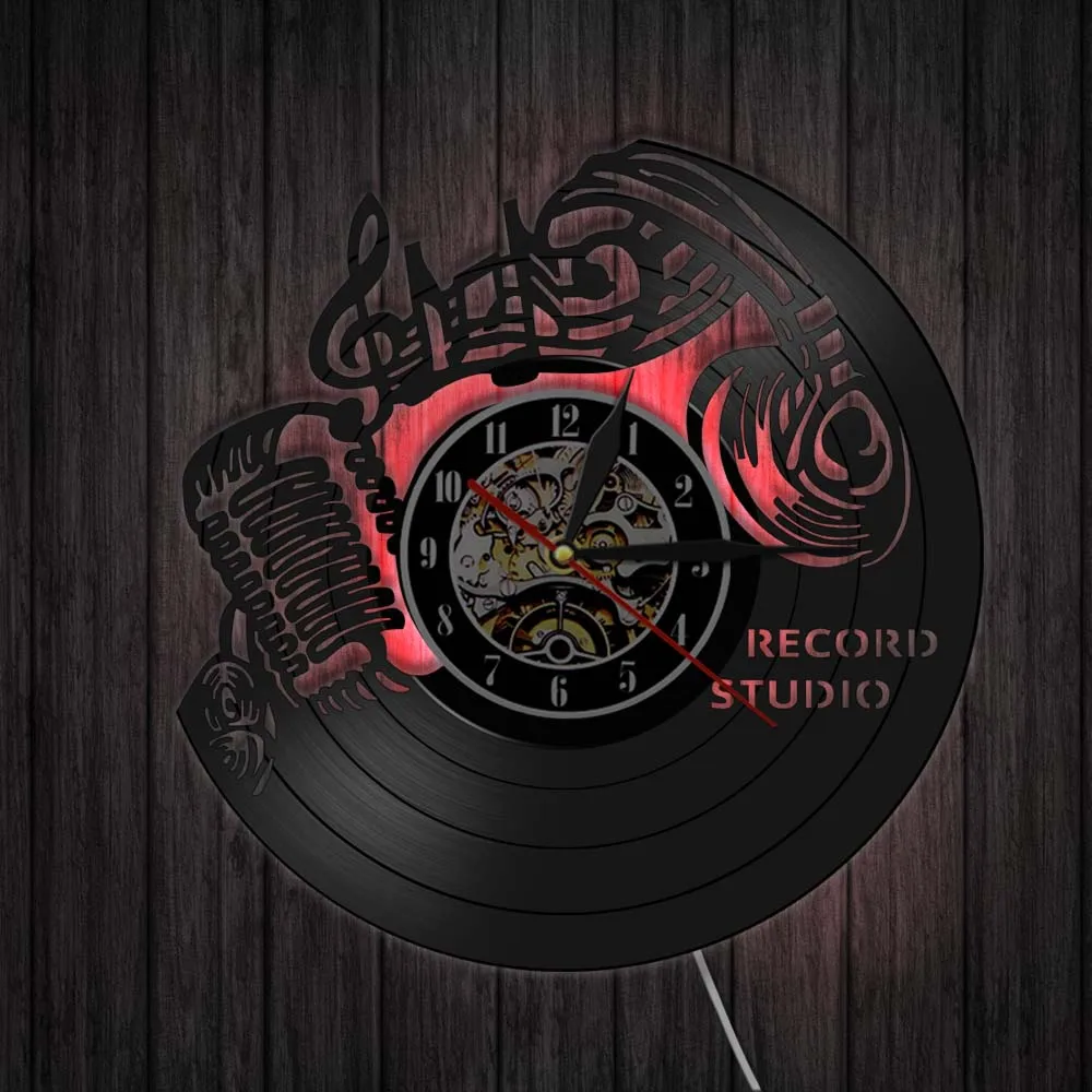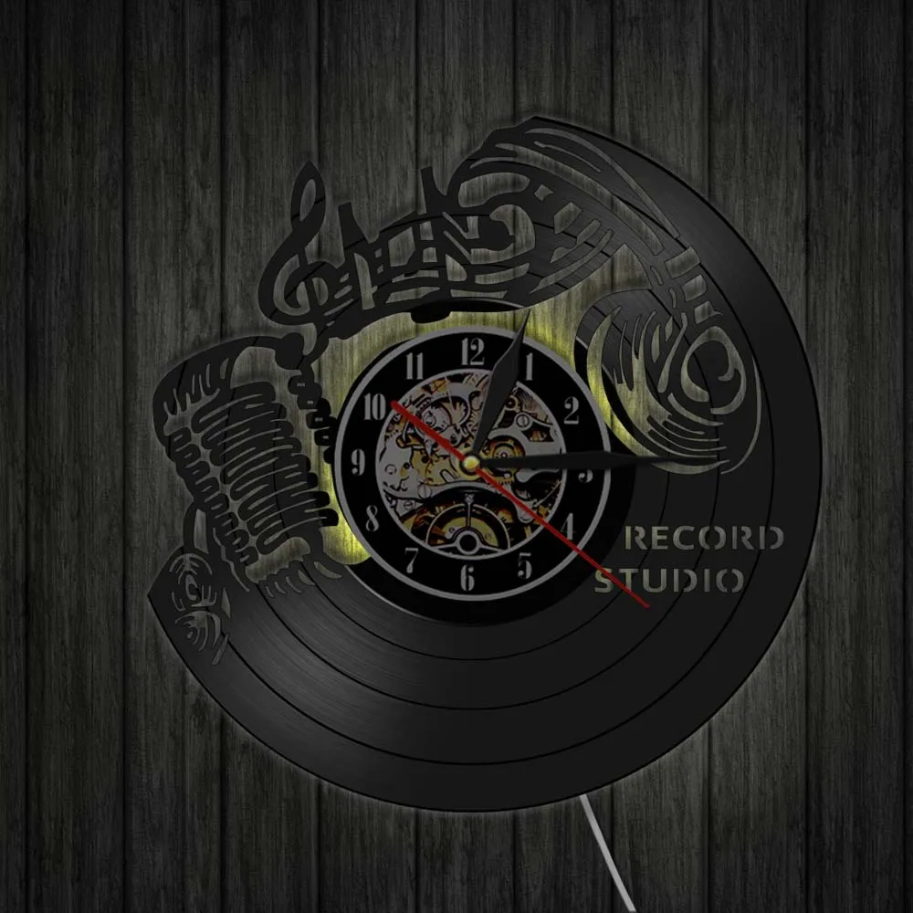 Музыкальные ноты настенные художественные высокие виниловые часы с клефом настенные часы музыка искусство винтажные часы Рок н ролл гарнитура микрофон настенный светильник