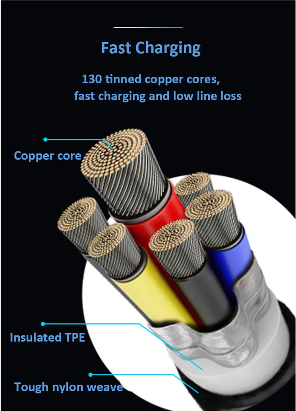 Кабель обладает сильной магнитной силой и может автоматически выровнять и подключаться к порту через слепое магнитное притяжение, чтобы значительно уменьшить повреждение интерфейсов зарядки на мобильный телефон, вызванное многократным подключением и отключением.
