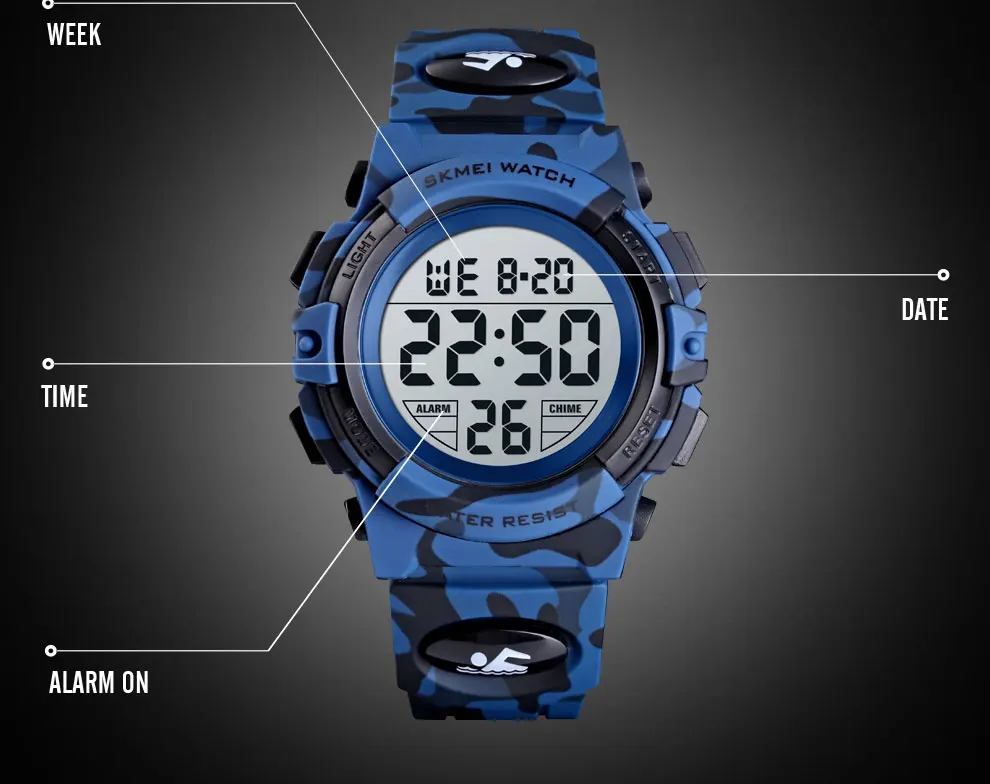 Детские цифровые наручные часы SKMEI, водонепроницаемые, 50 м, с ка...