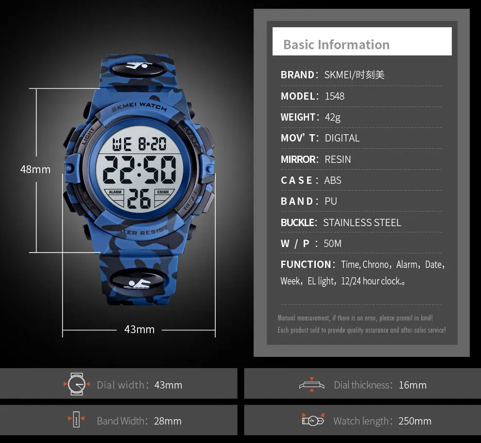 Часы SKMEI детские, светящиеся, цифровые, водонепроницаемые, для ма...