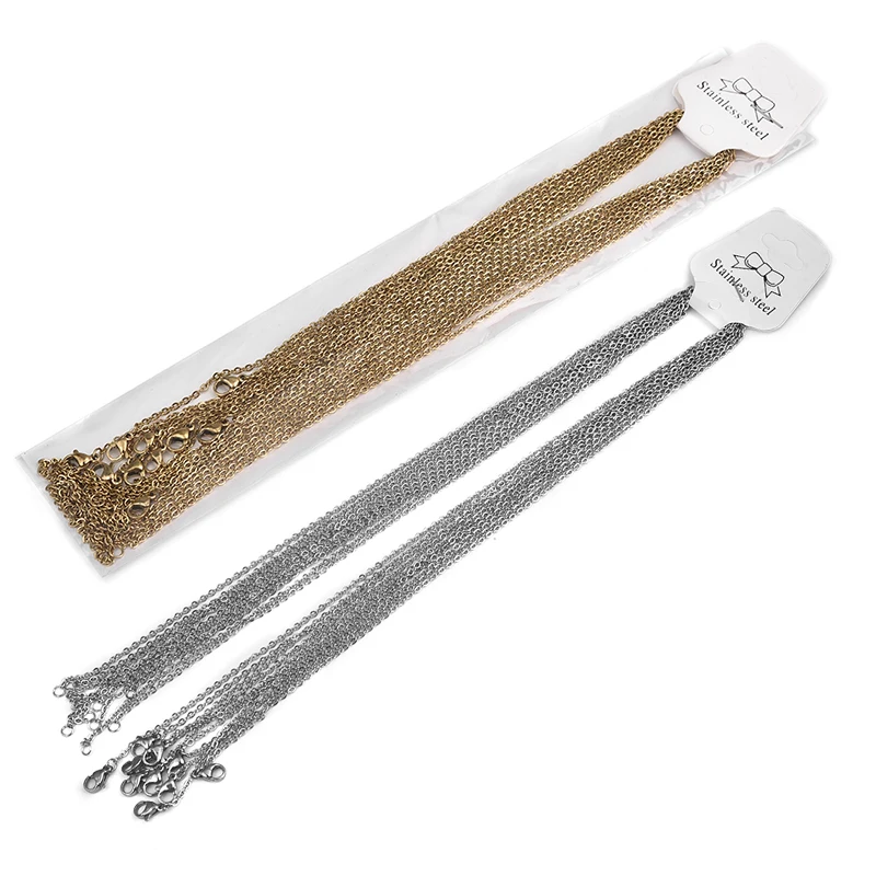 Цепь из нержавеющей стали с застежкой-карабином, звеньевая цепь серебристого и черного цвета с кубинской застежкой, для изготовления ювелирных изделий, 50 см, 2 мм, 10 шт.