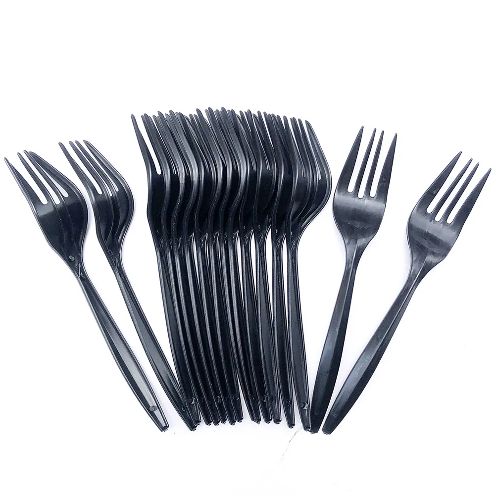 100 шт. в упаковке черные пластиковые вилка с ложкой Ножи Хэллоуин посуда одноразовая посуда вечерние поставки