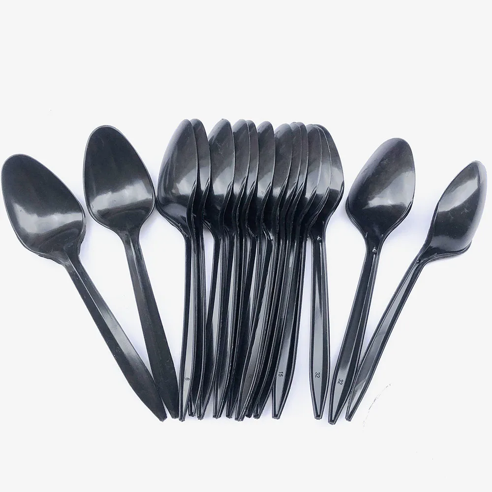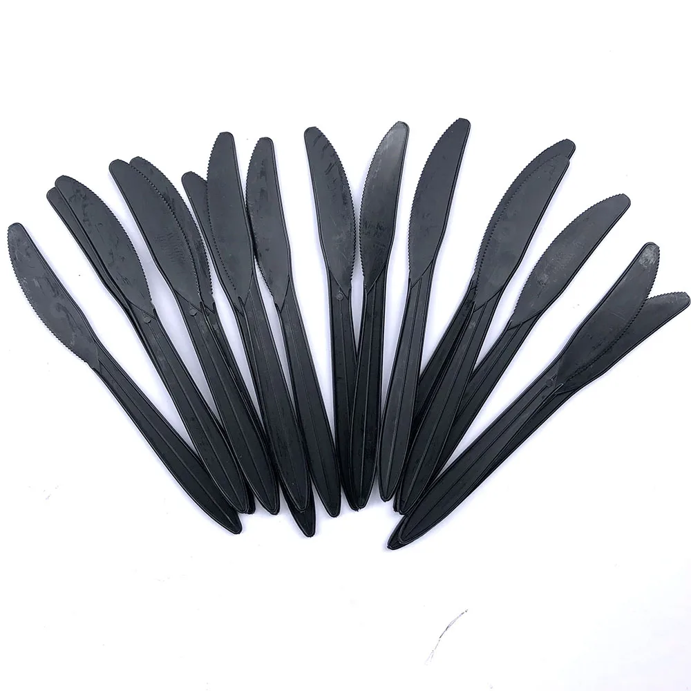 Черные пластиковые столовые приборы из ПП, 16 шт., нож, ложка, вилк...