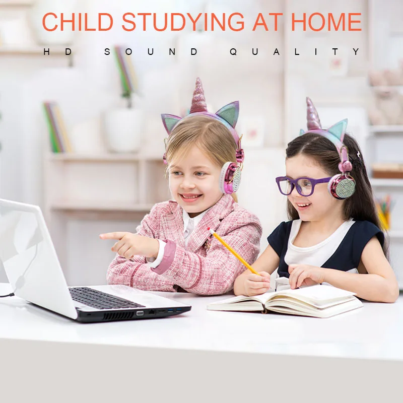 Qearfun наушники детские, Милый Единорог проводных наушников С микрофоном для мамы и дочери; Музыкальные стерео наушники компьютер мобильный телефон гарнитура подарок для детей, или коробка