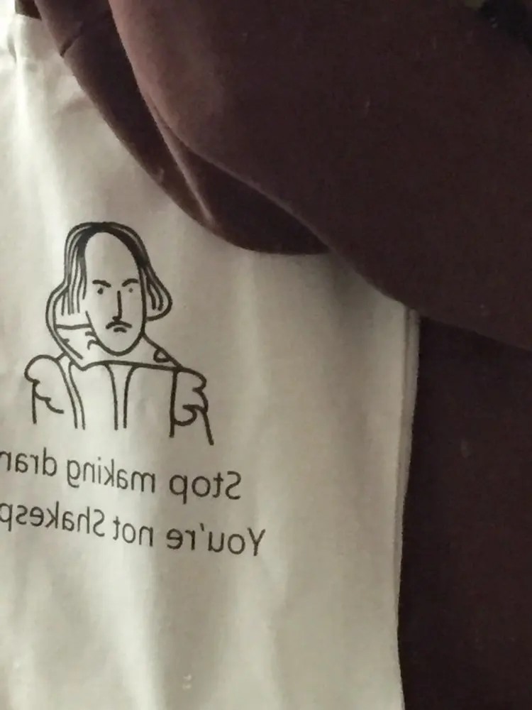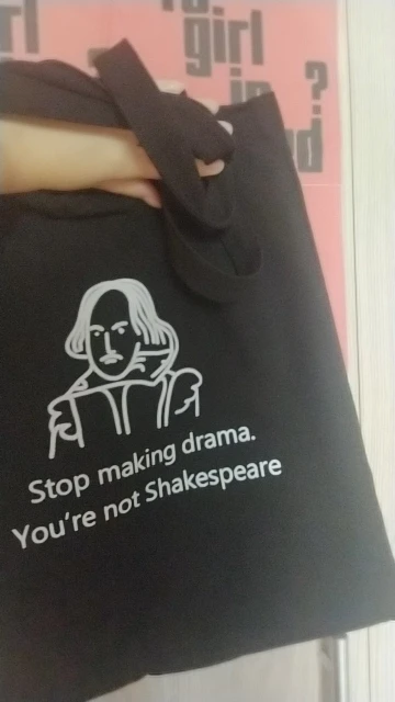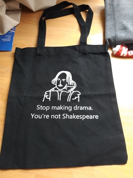 It is made of a weird shopping bag material and the handles are a bit short for a classic tote bag shilouette. It looks good though.