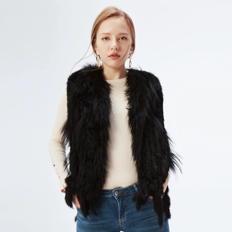 Knitted fur beanie vest women colorsWhite, Grey, Navy blue,black fur jackets