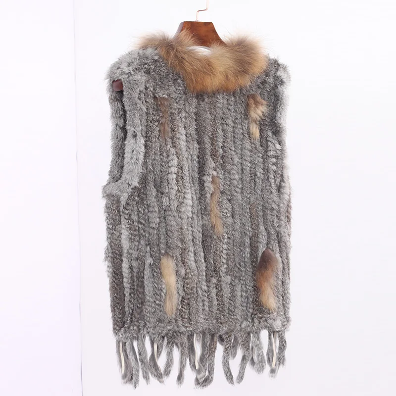 Жилет из натурального кроличьего меха с воротником из меха енота вечерние куртки вязаные жилеты Женский шерстяной жилет colete de pele de coelho