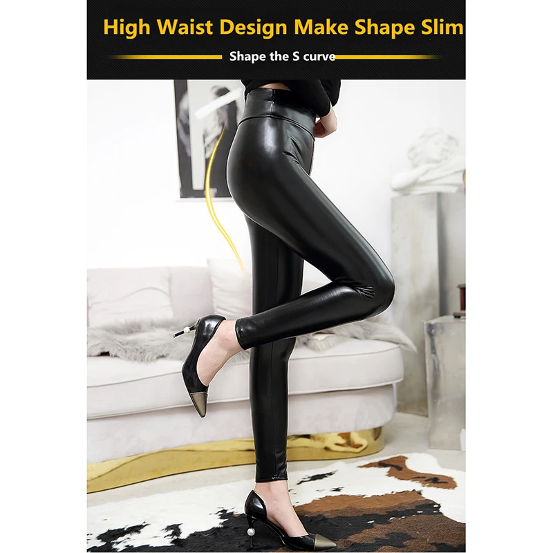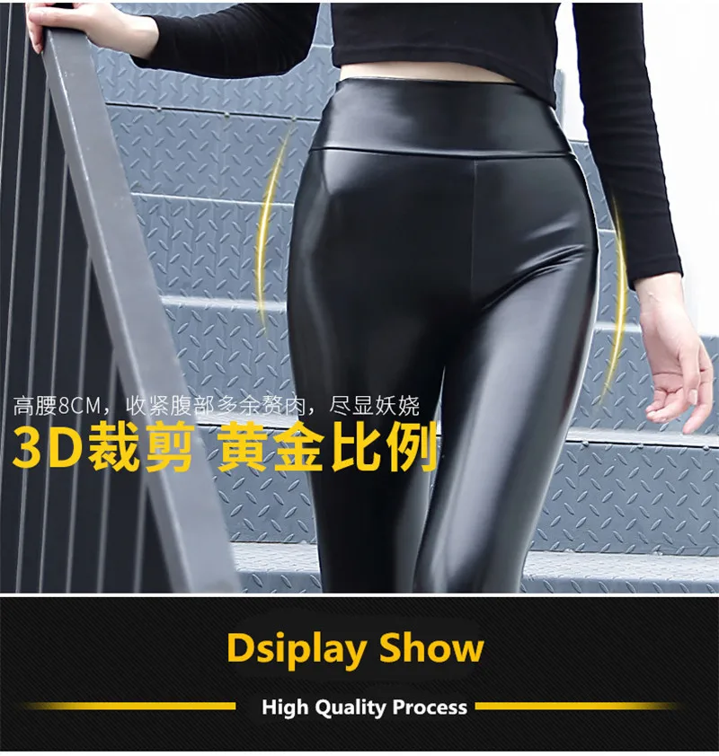 Модные женские брюки с высокой талией, кожаные леггинсы из ПВХ, водонепроницаемые женские латексные брюки, растягивающийся светильник, женские брюки, повседневные брюки