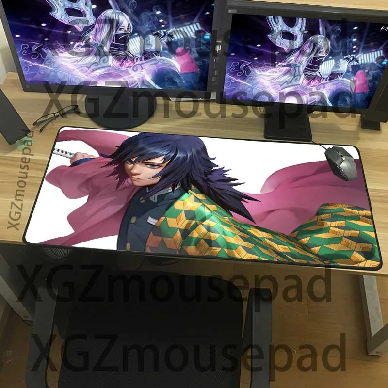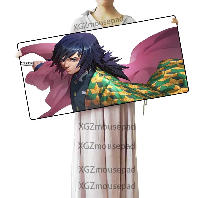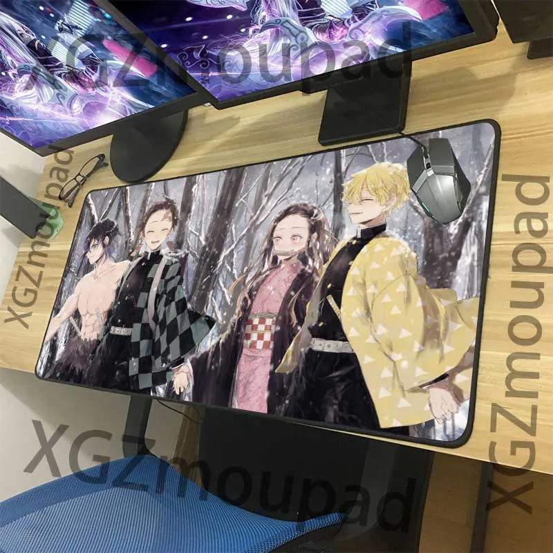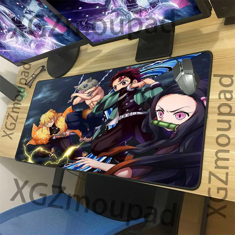 Коврик для мыши XGZ с мультяшным принтом, большой нескользящий коврик для скоростного компьютера, черный, с застежкой на краю, аниме, рассекающий демонов, совместим с Kimetsu No Yaiba Xxl