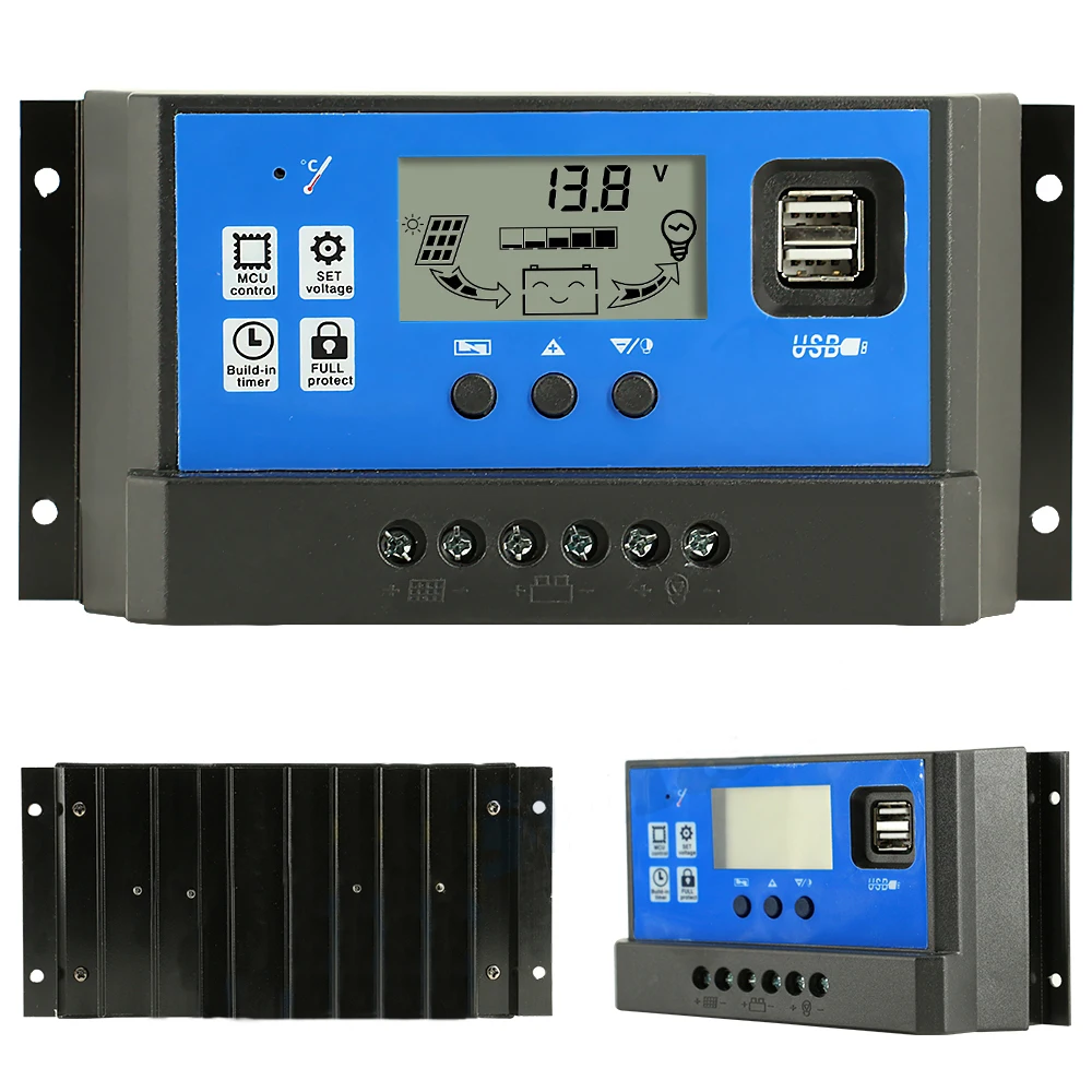 ШИМ 10A-60A 12В 24В Солнечный контроллер заряда с двойным 5В USB ин...