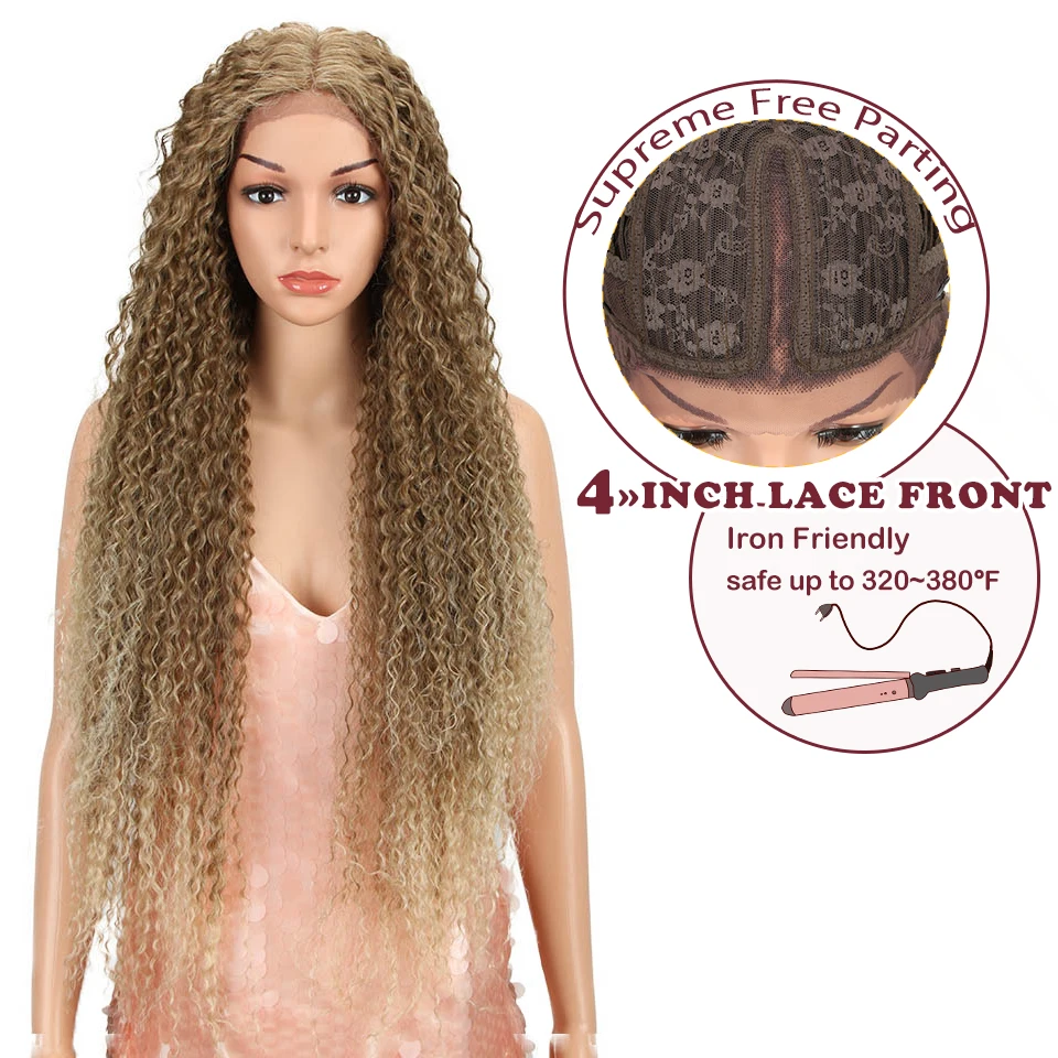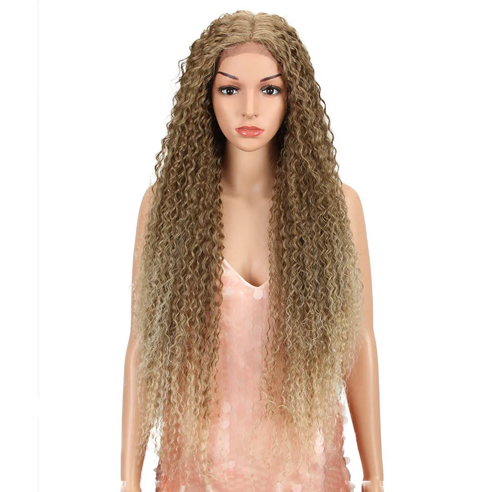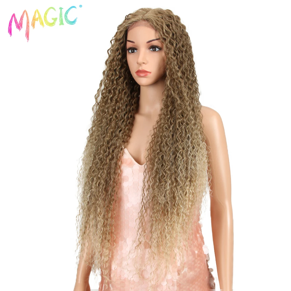 Mgaic 38 "Синтетические парики на шнурке для женщин средняя часть Длинный мягкий парик блонд с Омбре кудрявые Вьющиеся парики из термостойкого волокна