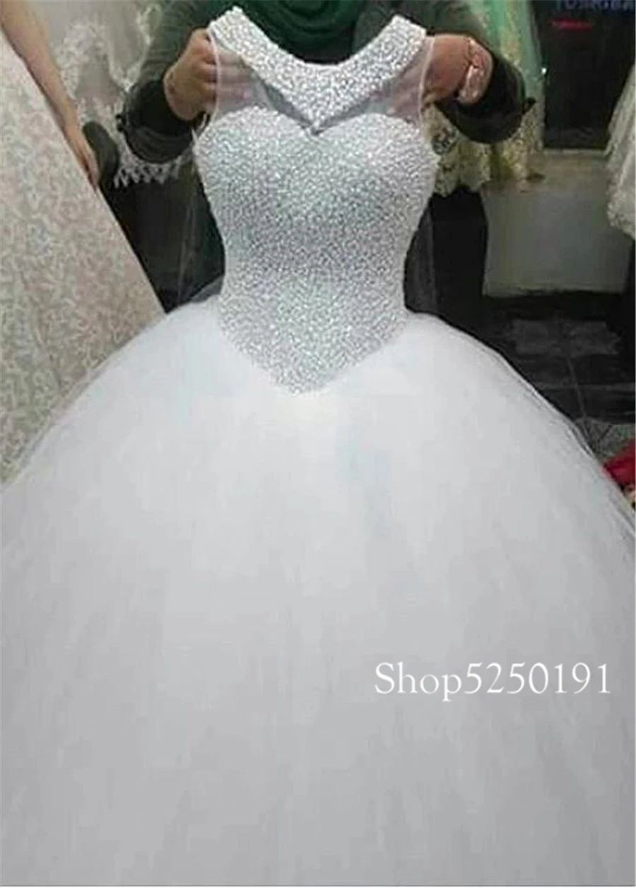 Изысканное Тюлевое бальное платье с драгоценным вырезом, свадебные платья с жемчугом, бисером, кружевные платья без рукавов с аппликацией, 2021