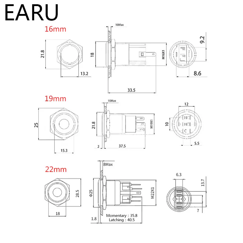 161922 мм металлический кнопочный переключатель светодиодный светил...