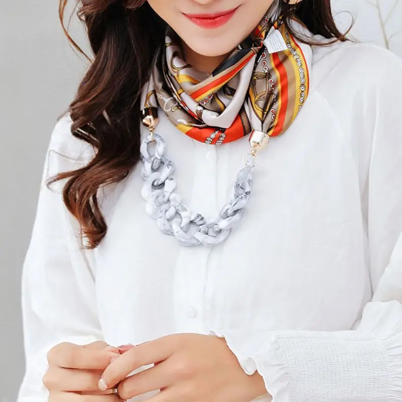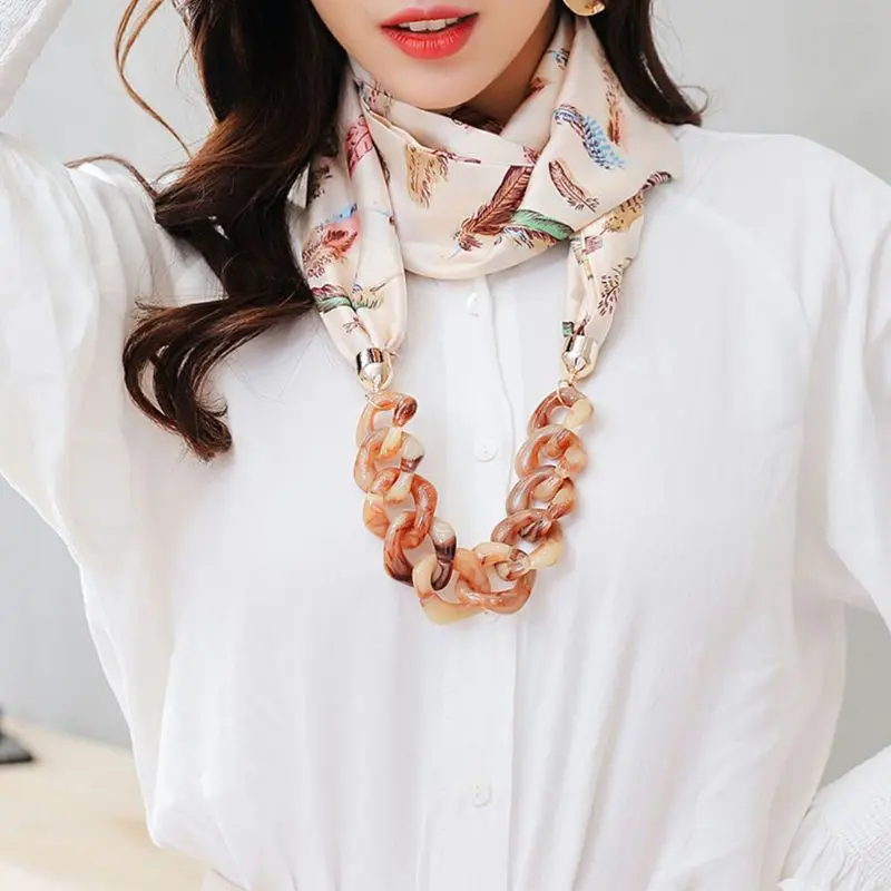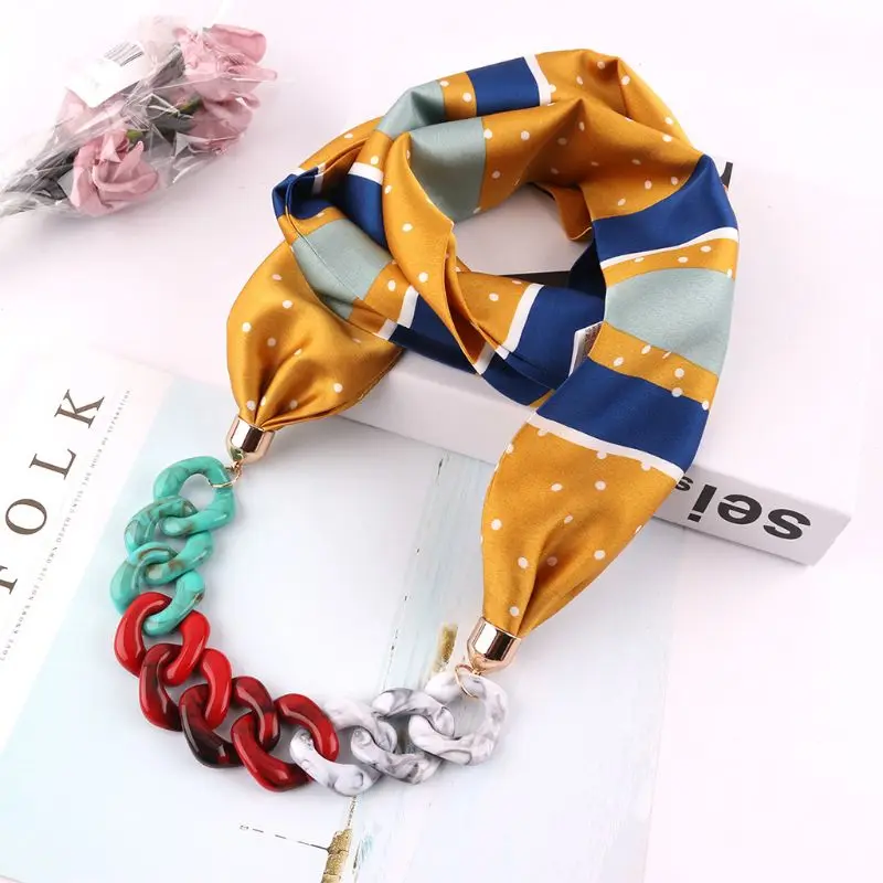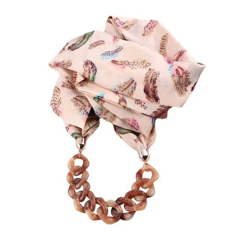 Женский этнический Ретро шейный платок, шарф с подвеской-цепочкой, ожерелье из искусственного шелка с принтом в горошек и перьев