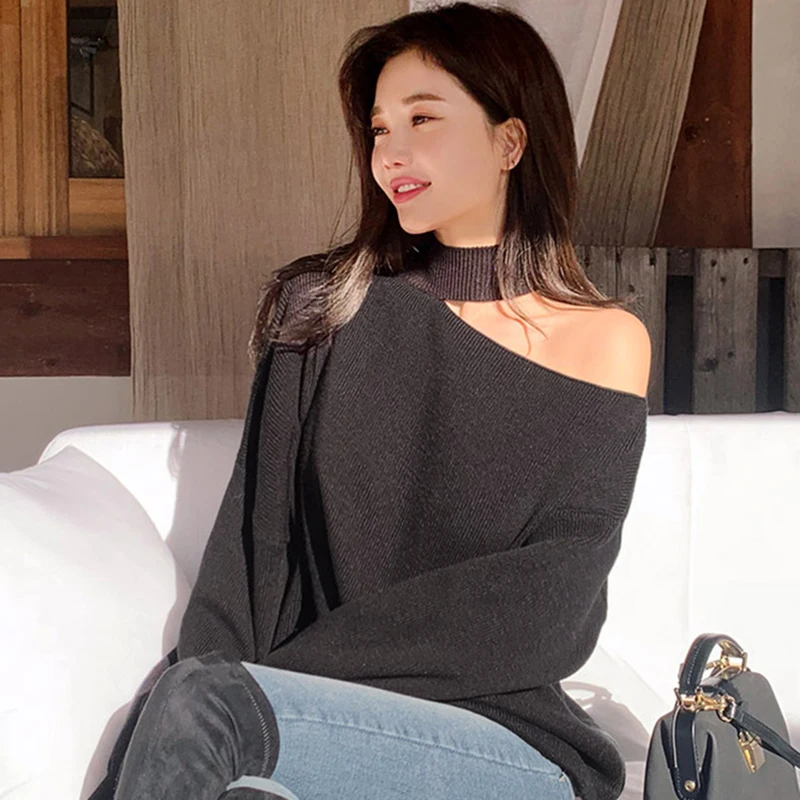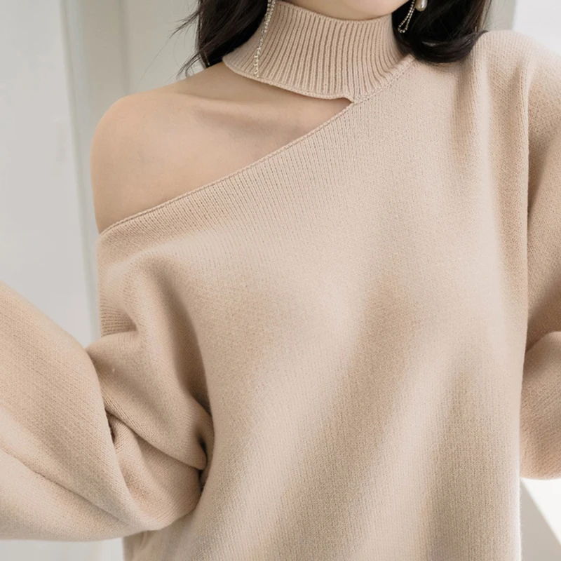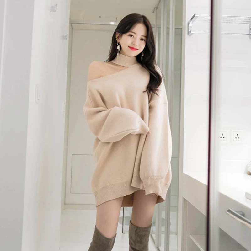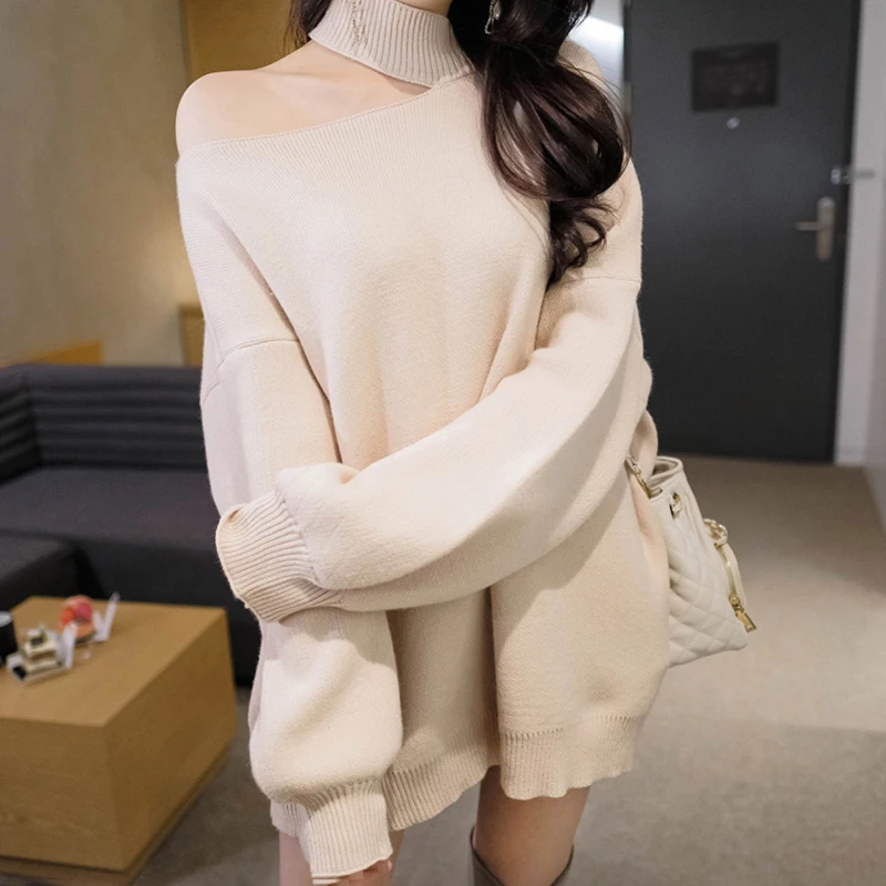 Свитер Женский вязаный оверсайз с воротником хомут, корейский пуловер, свободная верхняя одежда V966