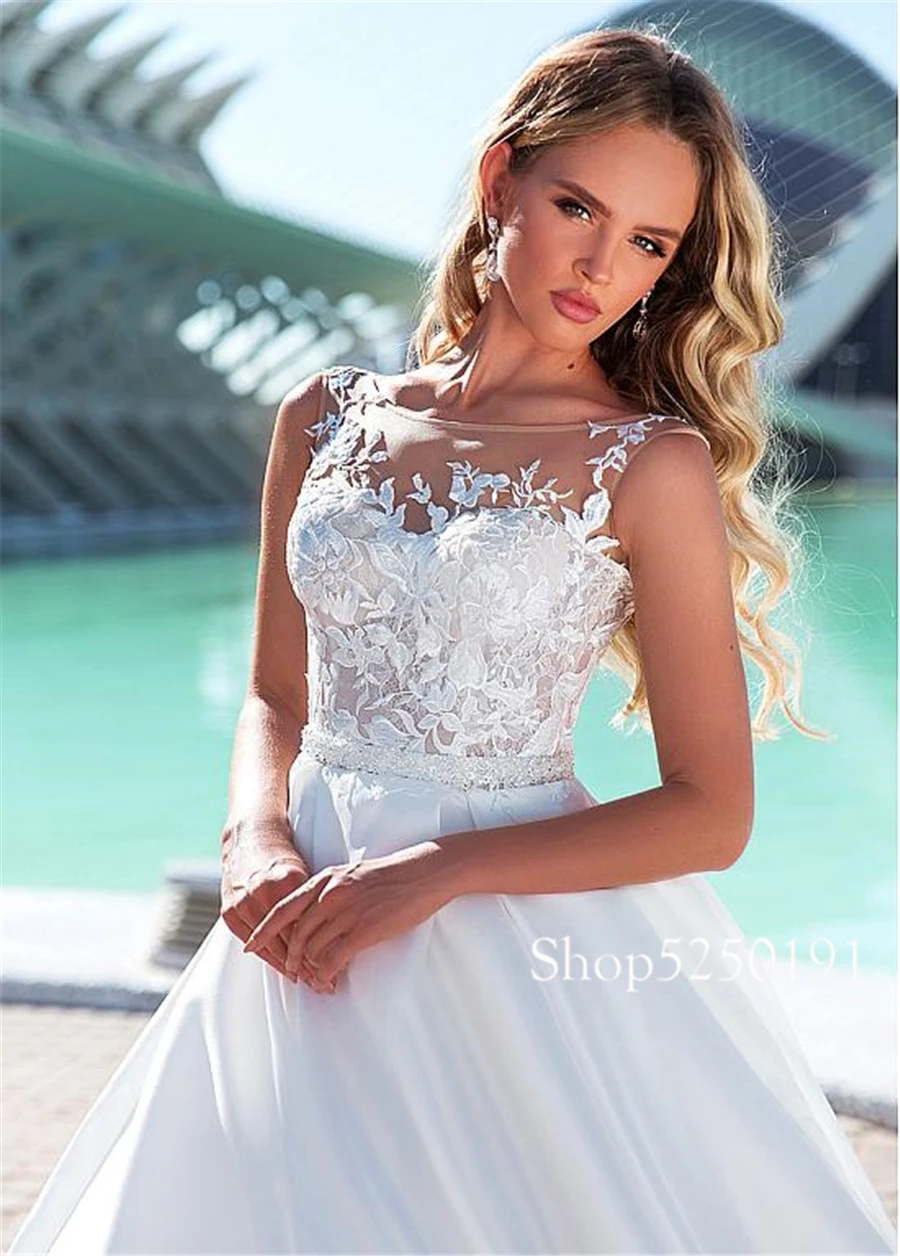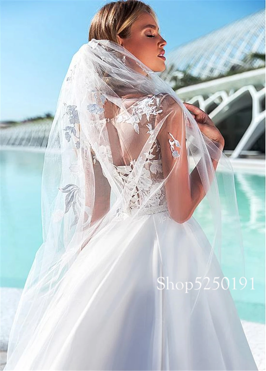Платье Свадебное ТРАПЕЦИЕВИДНОЕ из нежного тюля и атласа с вырезом лодочкой и поясом с бусинами