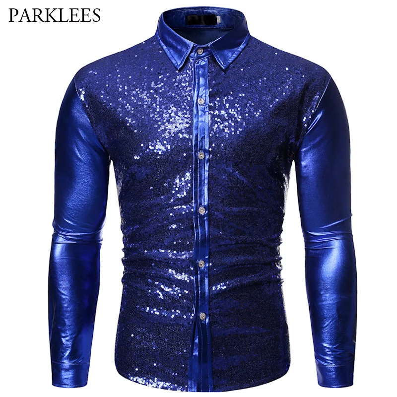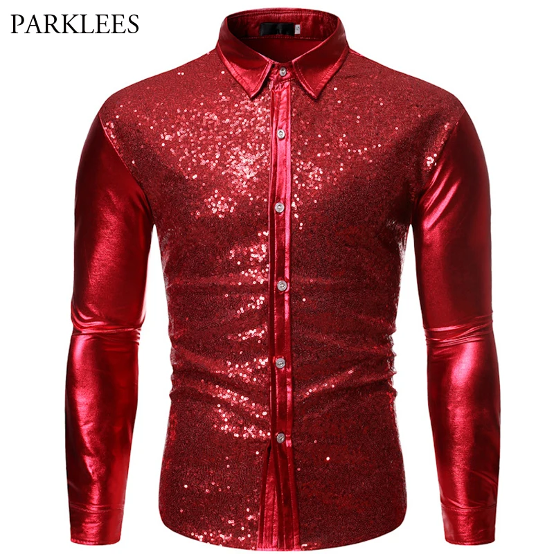 Роскошные красные блестящие мужские блестящие рубашки с длинным рукавом для дискотеки и вечеринки, повседневные приталенные костюмы для сценического танца и выпускного вечера, рубашка