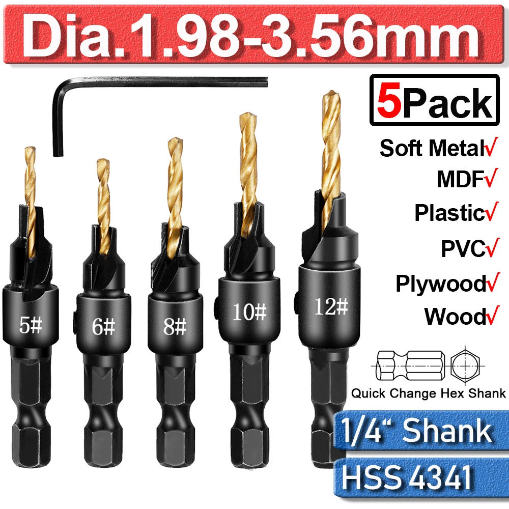 5 шт 5 канавки на возраст от 6 до 12 лет # столярное дело зенковки сверло набор 1/4 "Шестигранным хвостовиком HSS деревообрабатывающий пилот винтовых отверстий