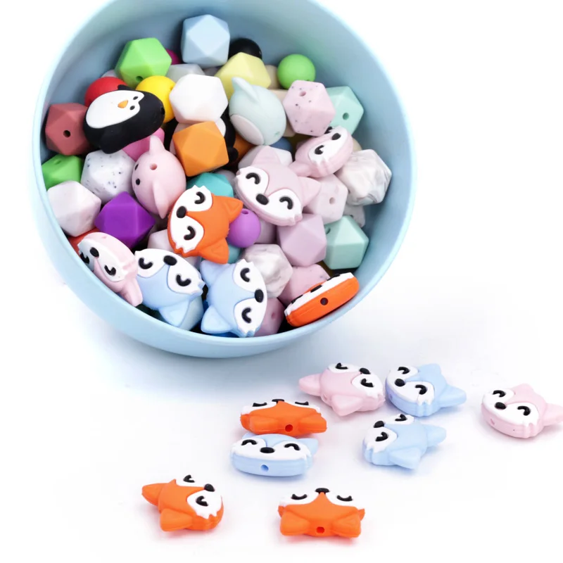 10 шт., силиконовые бусины в форме лисы, для прорезывания зубов