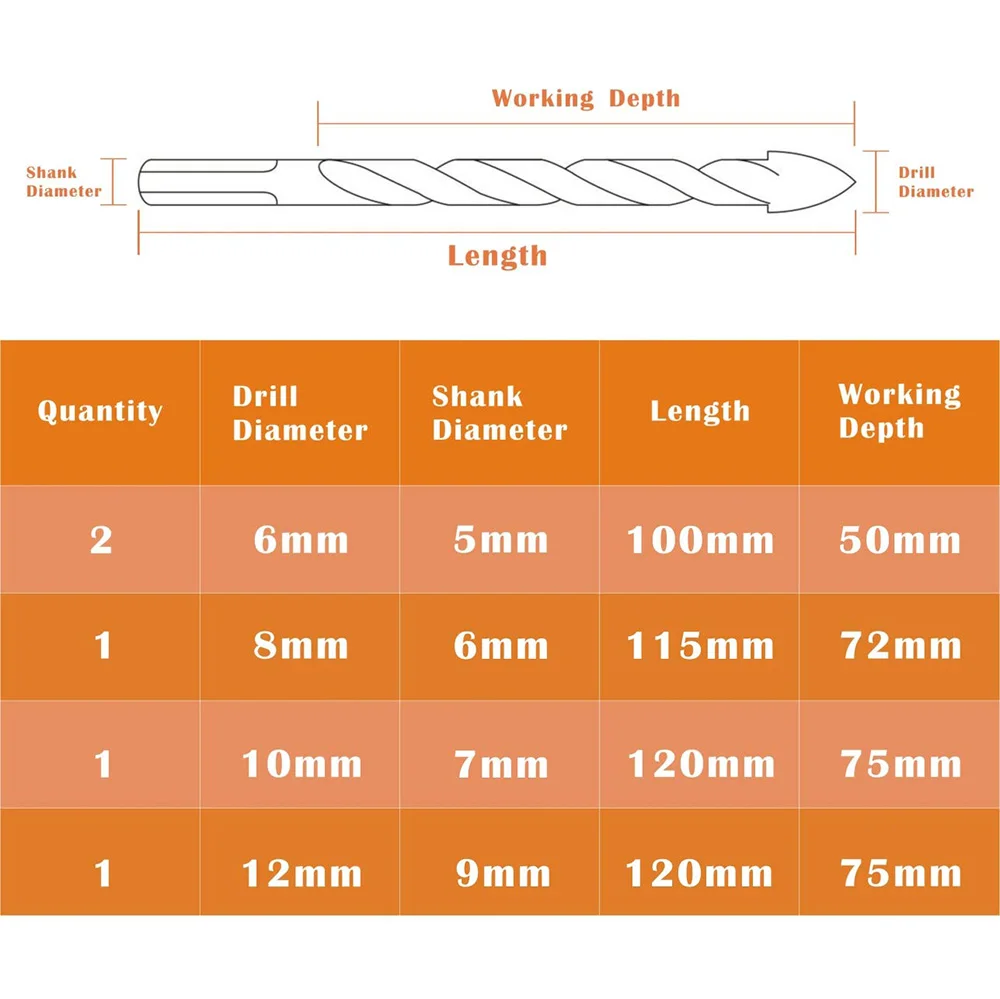 5 шт мульти-материал карбида вольфрама наконечник плитки сверла для фарфора керамического бетона кирпичной стены стеклянные зеркала пластиковое Дерево 6 8 10 12 мм