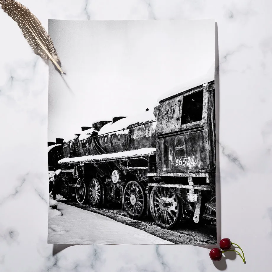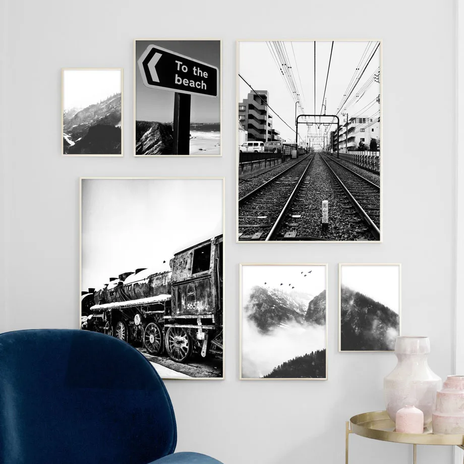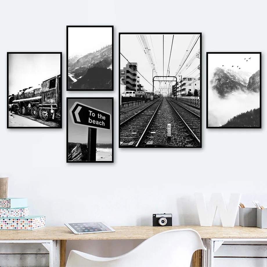 Настенная Картина на холсте винтажный поезд Снежная гора черные белые скандинавские постеры и принты настенные картины для декора гостиной