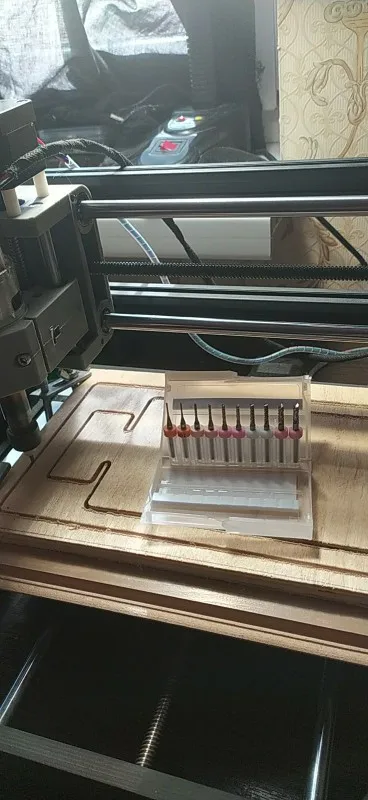 Итак. Заказывал патрон er11 5mm, гравез с углом 30°, а также комплект кукурузы от 1mm до 3mm. Патрон хороший, биения в допуске лично для меня. Около 2 соток. Индикатора нет. Налез на вал мотора после прогрева горелкой. Гравер отличный, оргстекло, дерево берет на ура. Фрезы хорошие, в наборе диаметры 1, 1.5, 2, 2.5, 3. Каждого диаметра по два. Все острые, свою работу выполняют. Доставка около 3 недель в Казань. Буду заказывать ещё