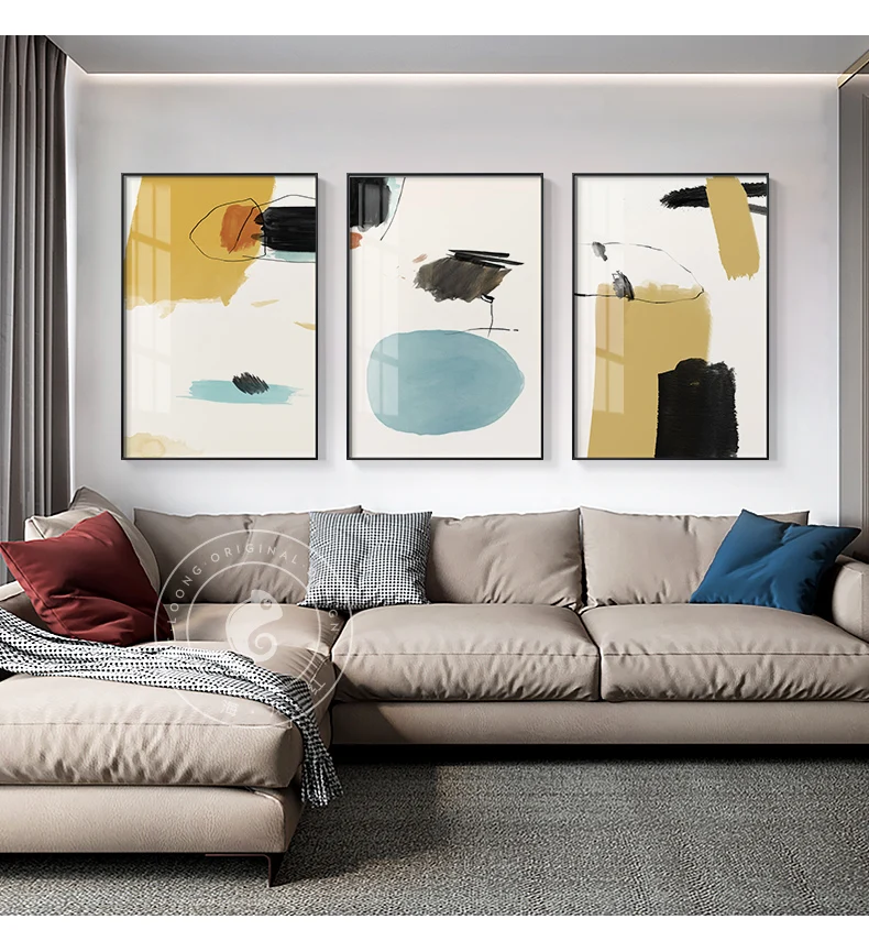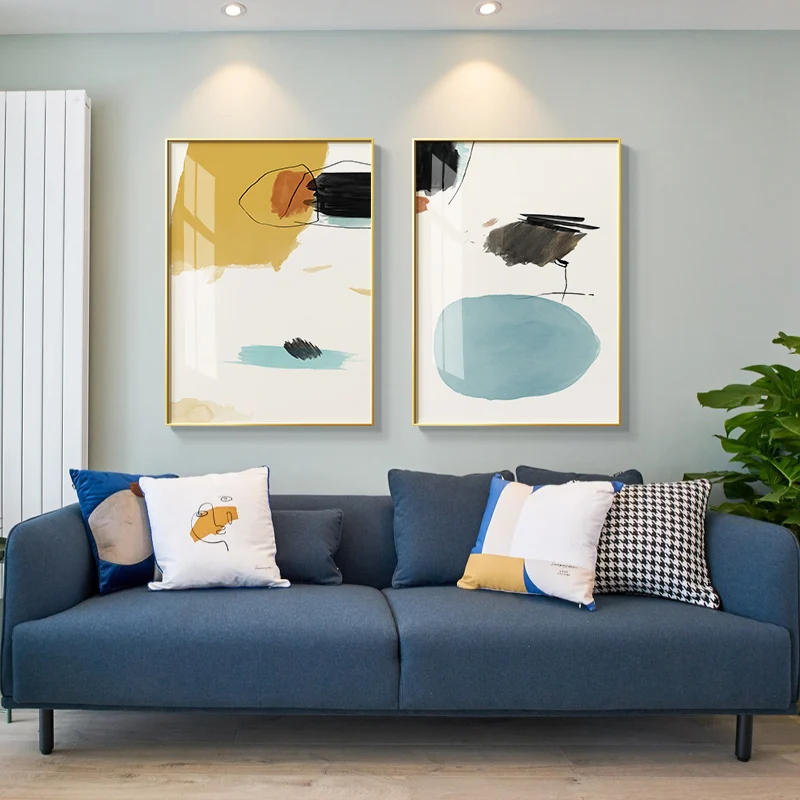 Современные Красочные абстрактные синие желтые картины на холсте, м...