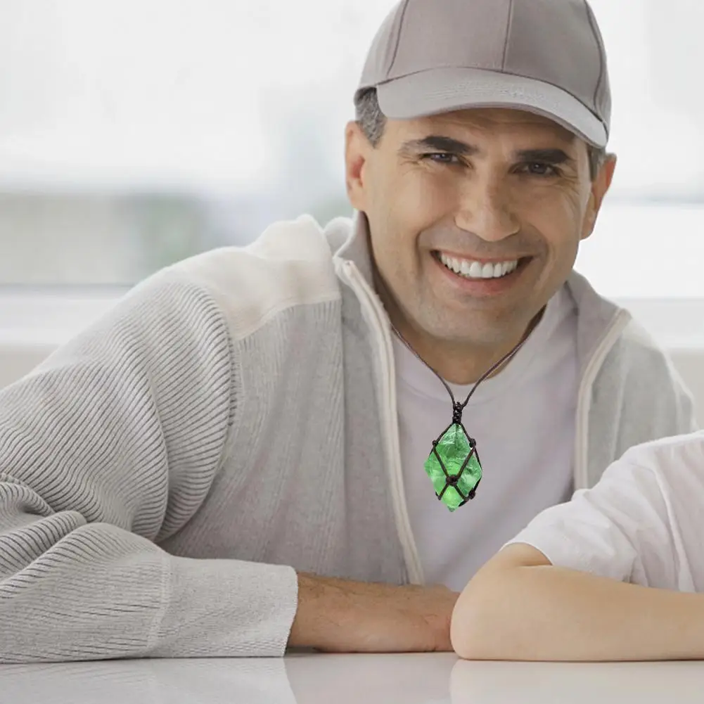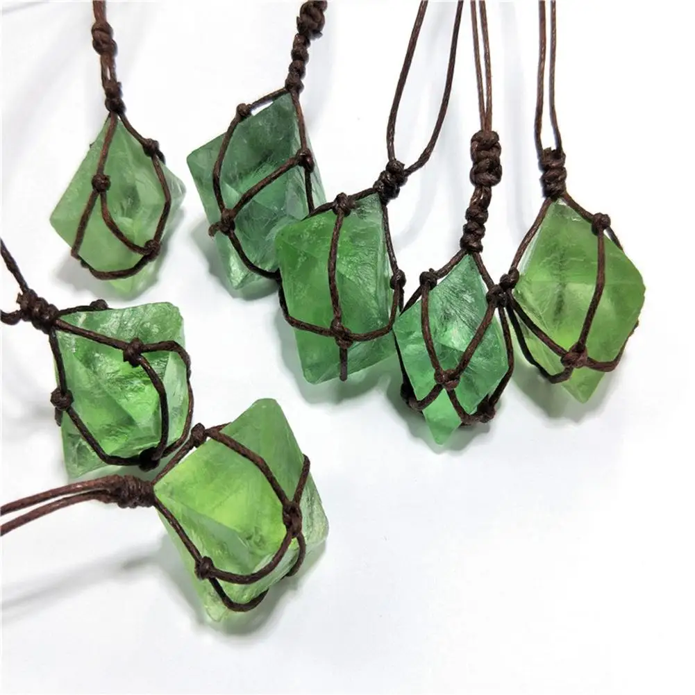 Натуральный изумруд кристалл кулон лечебный DT драгоценный камень жезл для рейки зеленый флюорит обернуть ожерелье Плетение Йога макраме для взрослых