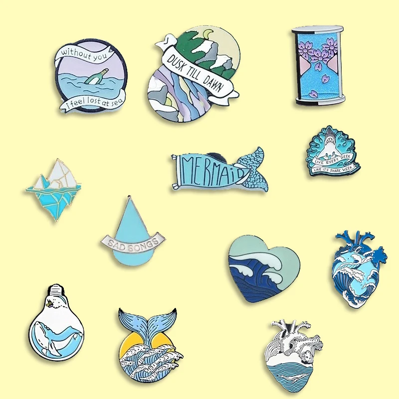 Серия Ocean, эмалированная булавка в форме сердца, брошка в форме волны Русалочки, рюкзак, джинсовая рубашка, на лацканах, морские украшения, аксессуары, подарок для друзей