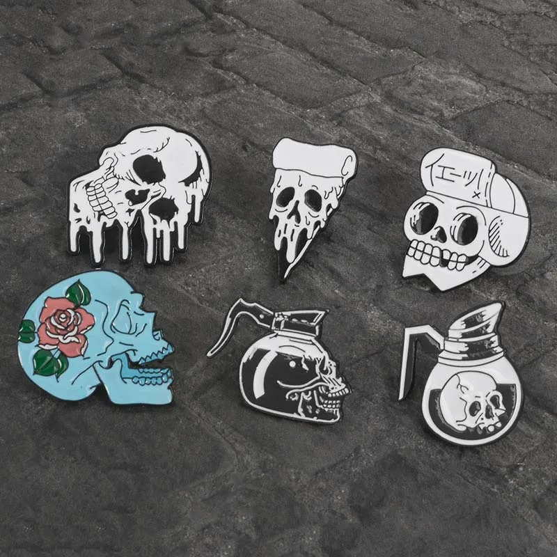 Эмалированные значки в виде черепа, диска, искусственного сплава, с...