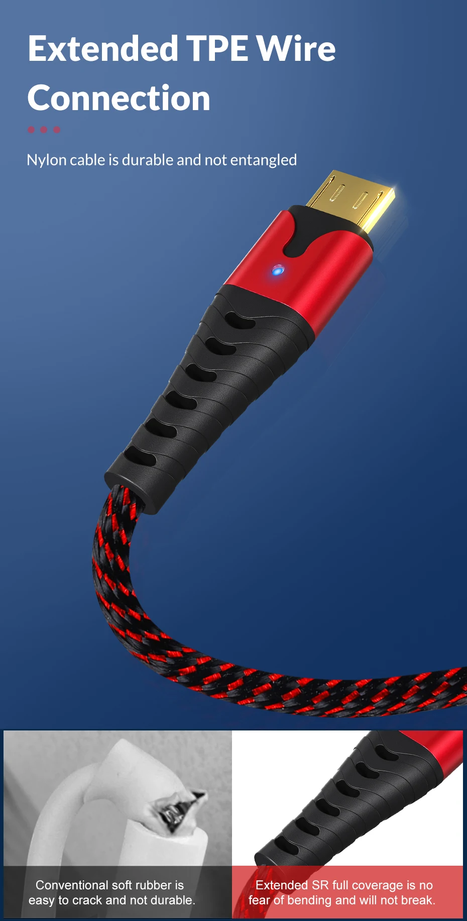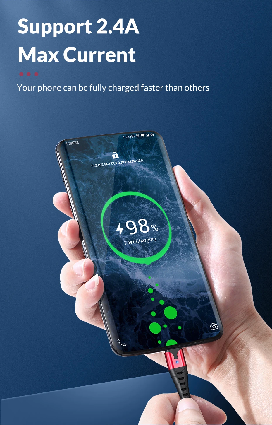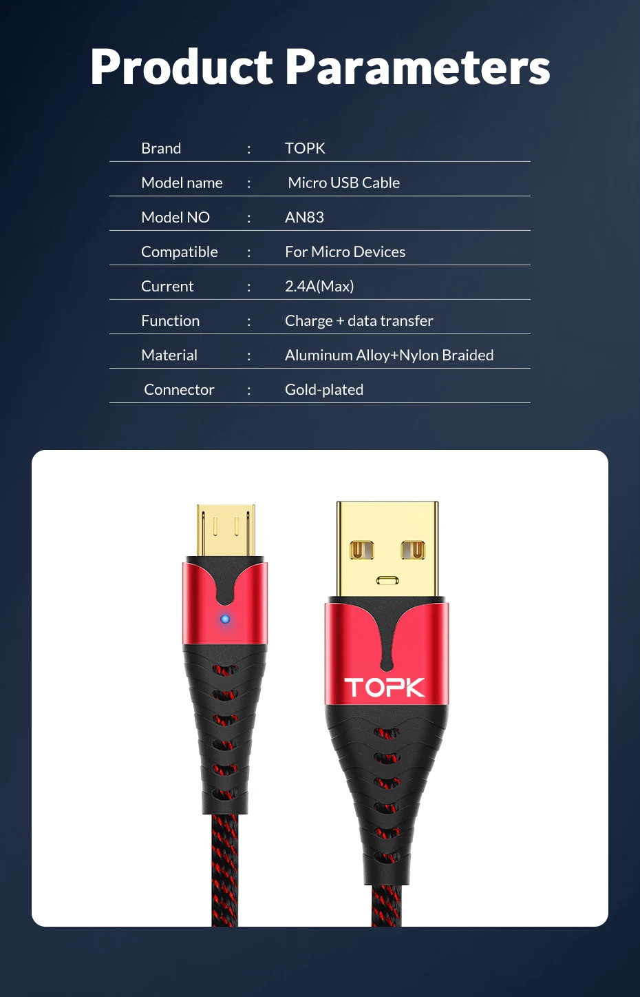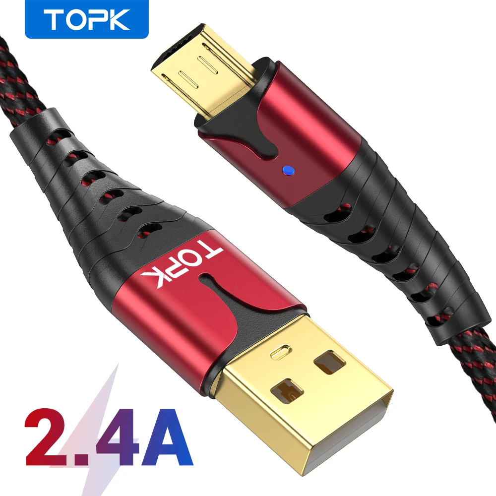 Кабель Micro USB TOPK со светодиодной подсветкой для быстрой зарядки Xiaomi Redmi Note 5 Pro Android
