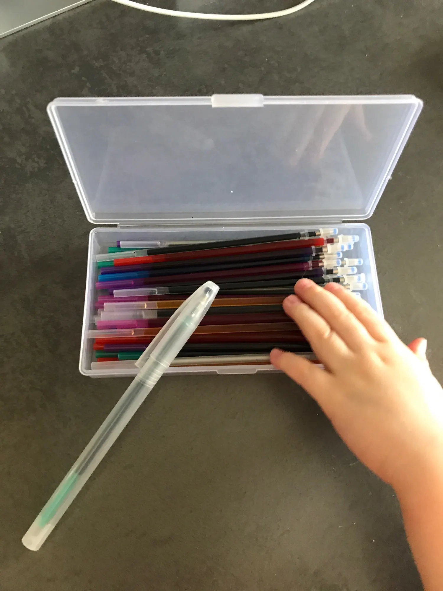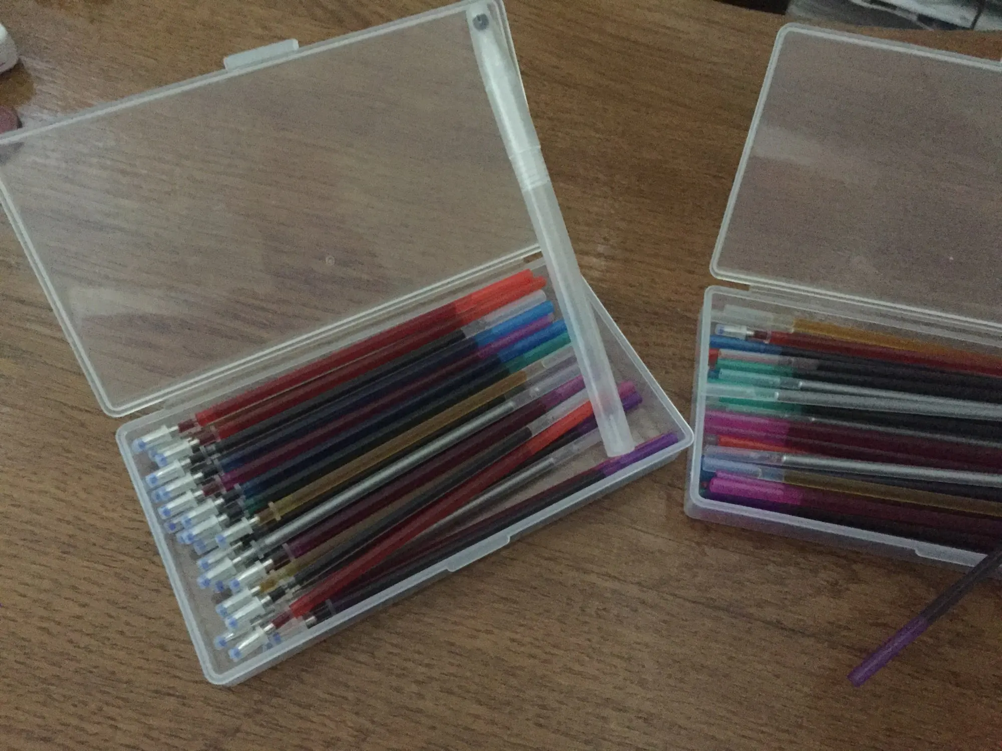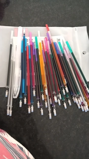 Заказ пришёл в сборной посылке. Доставка чуть больше месяца. Стержни хорошие, пишут ровно и чётко. Пришёл полный комплект из 8 цветов по 5 штук с ручкой. Понравилось наличие серебристого цвета. В деле ещё не пробовала. Надеюсь они меня не разочаруют. Я довольна. Спасибо продавцу!
