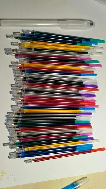 Получил этот пакет ручек очень быстро. Все 40 заправок для ручек были в наличии, а заправки хорошо сидят на пустой ручке. Все проверенные ручки хорошо написаны на бумаге и aida. Желтый цвет немного состарился, но в конце концов сместился с небольшим давлением и вперед. Серебро хорошо писало, но было заметно теплее, чем другие ручки, кроме желтого. Все остальные были очень сочными. Позаботьтесь о том, чтобы ручки двигались, так как удержание их на одном месте и опускание приведут к большим брызгам чернил. На более темной ткани (темно-синий aida) было четко видно только серебро; Черный, красный и пурпурный оставляют небольшие впечатления. Я не проверял, насколько хорошо это смывается, как я планирую, когда я на самом деле использую их, оставьте их на моем проекта до его завершения, что обычно занимает больше месяца. Таким образом, я не буду тестировать, насколько хорошо моется до месяца.