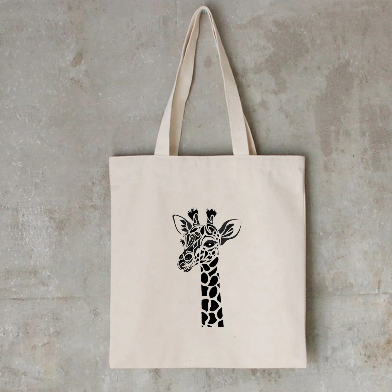 Холщовая Сумка на плечо для женщин, хлопковый тоут для покупок, простая Экологически чистая Студенческая Сумочка для покупок с мультяшным принтом животных, кошек, оленей
