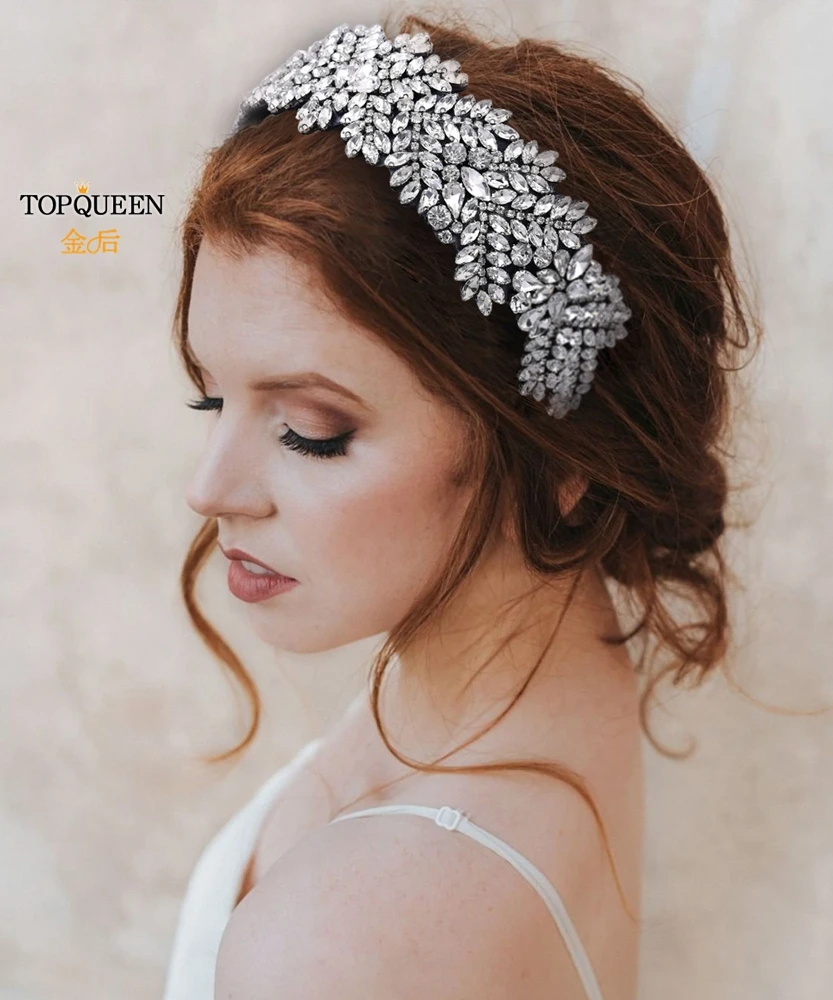 Женский обруч для волос TOPQUEEN, Серебристый обруч для невесты, S292-FG