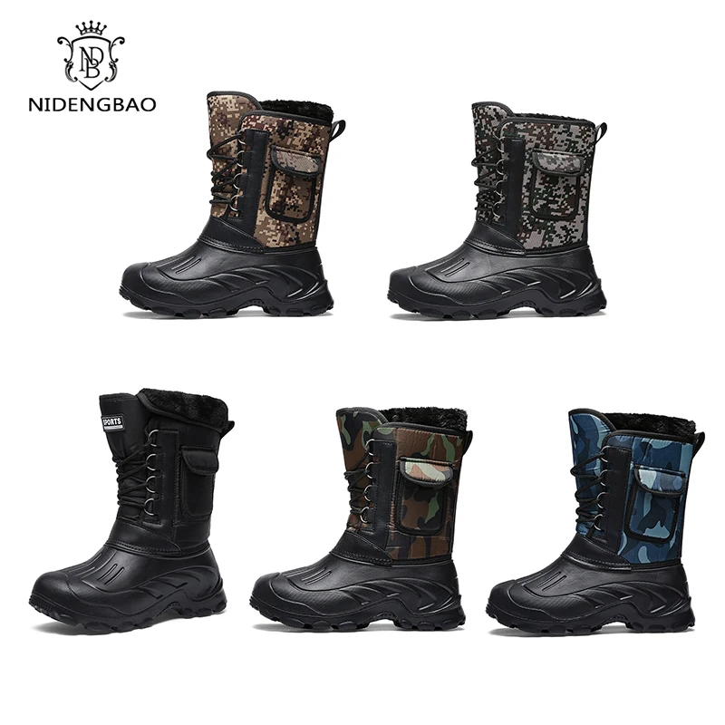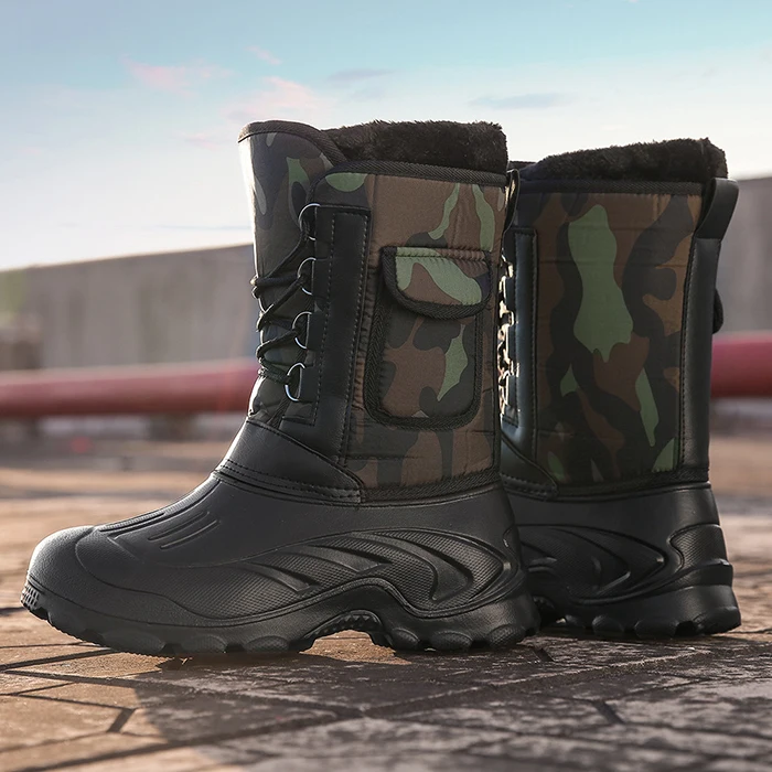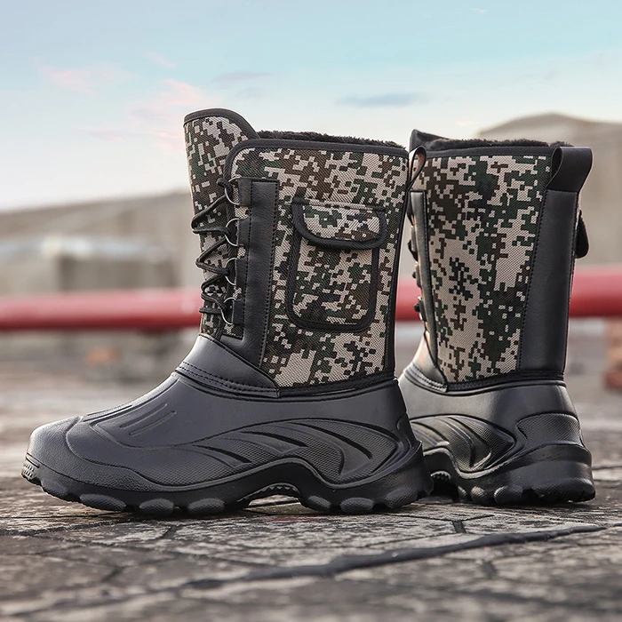 Мужские зимние камуфляжные водонепроницаемые ботинки до середины икры, с мехом